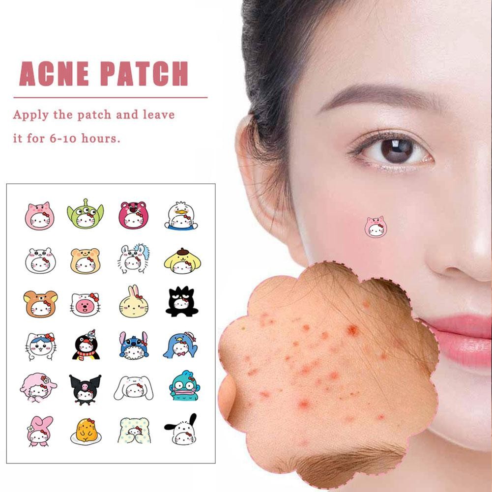 24 CÁI Kitty Cat Acne Dán Bao Da Mụn Miếng Dán Sanrio Phim Hoạt Hình Series Mụn Miếng Dán PE