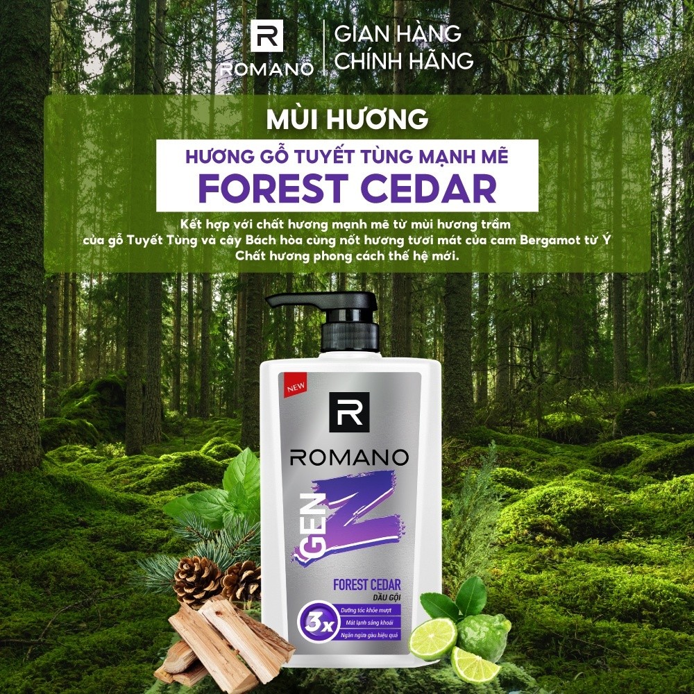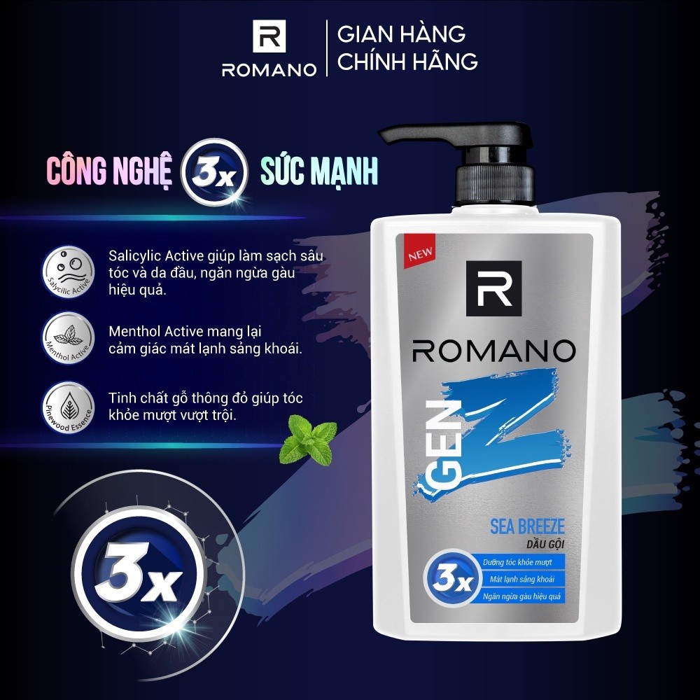 [CHÍNH HÃNG] Dầu Gội ROMANO Gen Z Hương Sea Breeze / Forest Cedar 610g – Làm Sạch Gàu, Mát Lạnh Sảng Khoái