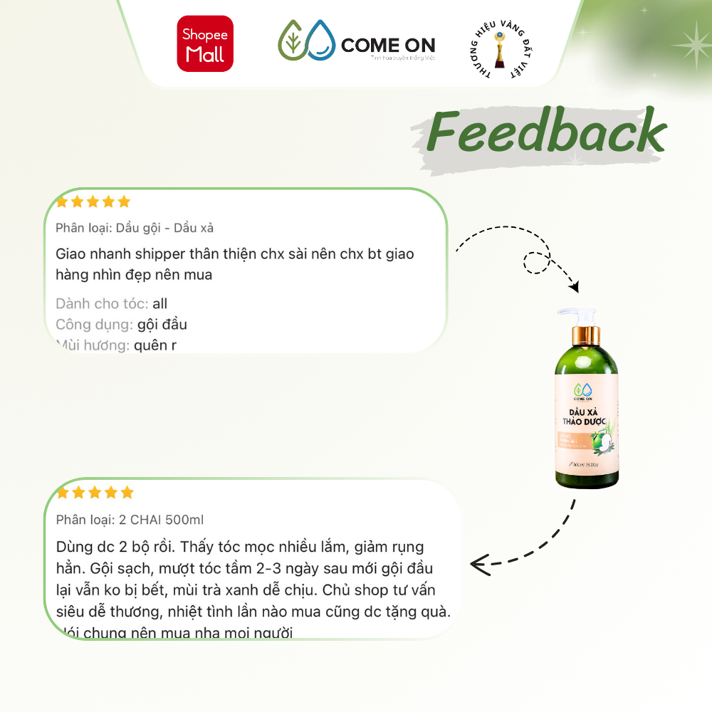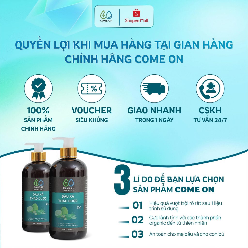 Dầu xả tóc hữu cơ COME ON 500ml, sản phẩm chiết xuất tự nhiên, an toàn cho mẹ