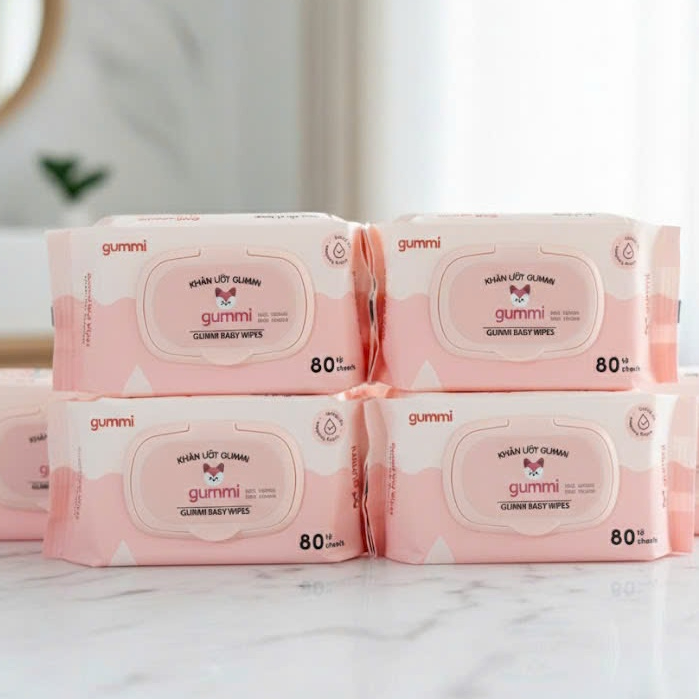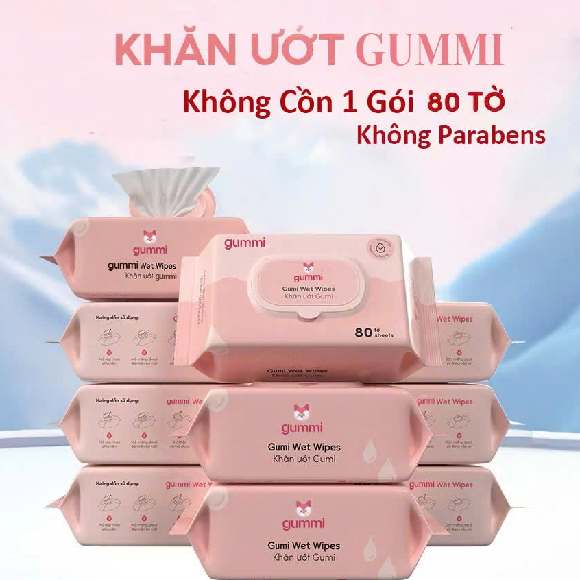 Thùng 12 gói Khăn Ướt GummiKisd Không Cồn 80 Tờ 1 Gói
