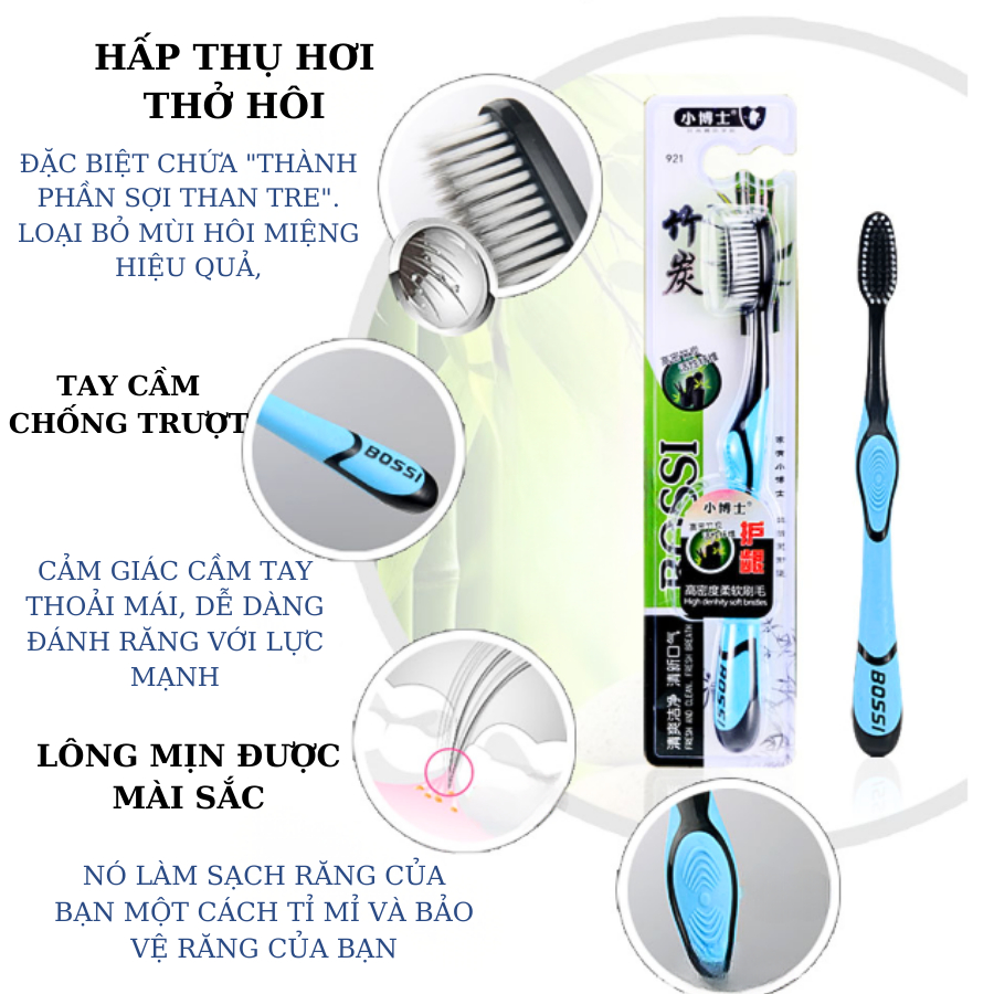 Bàn Chải Đánh Răng Than Tre Hoạt Tính Bàn Chải BOSSI 921 Hàn Quốc Dụng Cụ Vệ Sinh Răng Miệng RIN