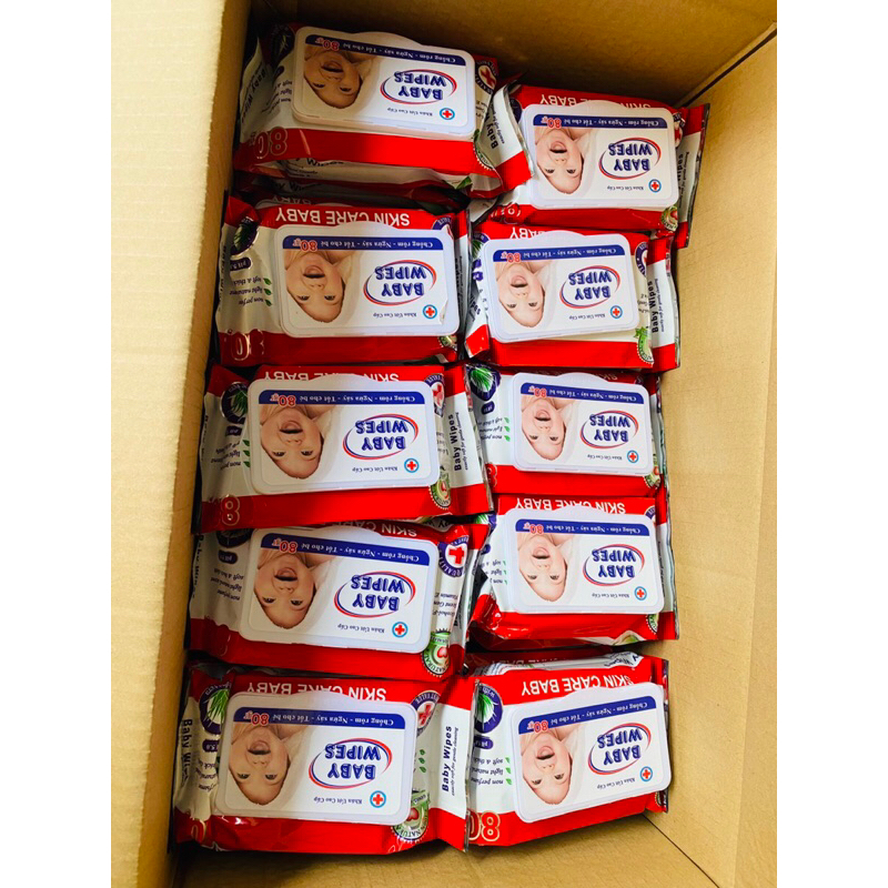 Gói khăn ướt baby wipes 80gr không mùi, an toàn cho bé