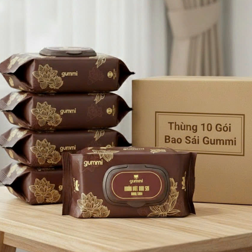 Thùng 10 Gói Khăn Ướt Lau Ban Thờ Gummi 1 Gói 80 Tờ Hương Trầm Quế Tự Nhiên