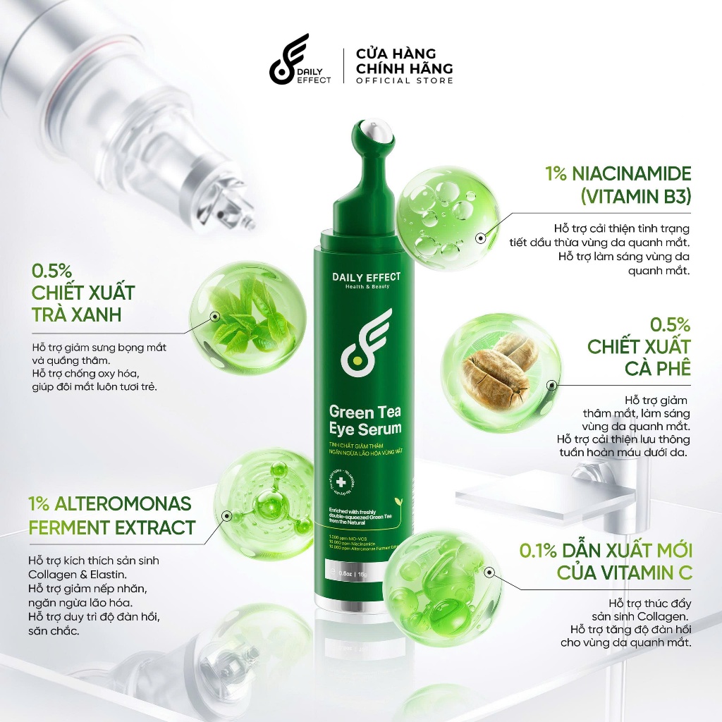 [Serum Hỗ Trợ Giảm Quầng Thâm Mắt & Bọng Mắt] DAILY EFFECT Green Tea Eye Serum (15g)