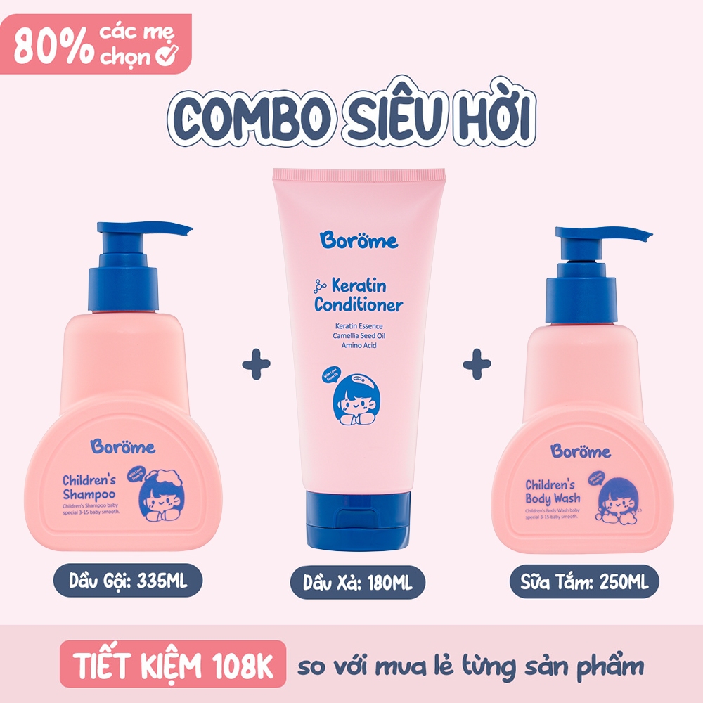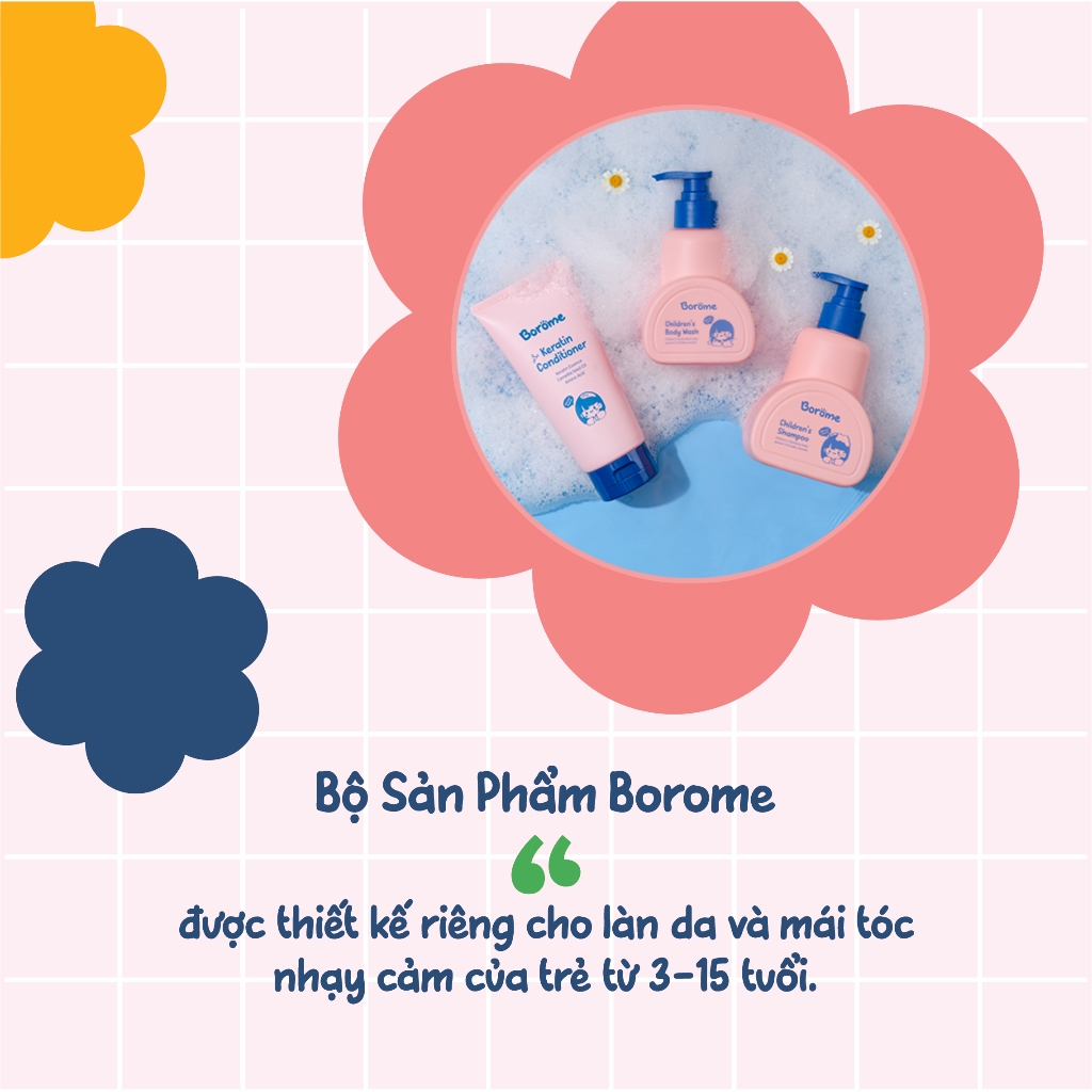 Dầu gội, dầu xả, sữa tắm trẻ em Borome thành phần lành tính, chăm sóc tóc và da của bé luôn khỏe mạnh