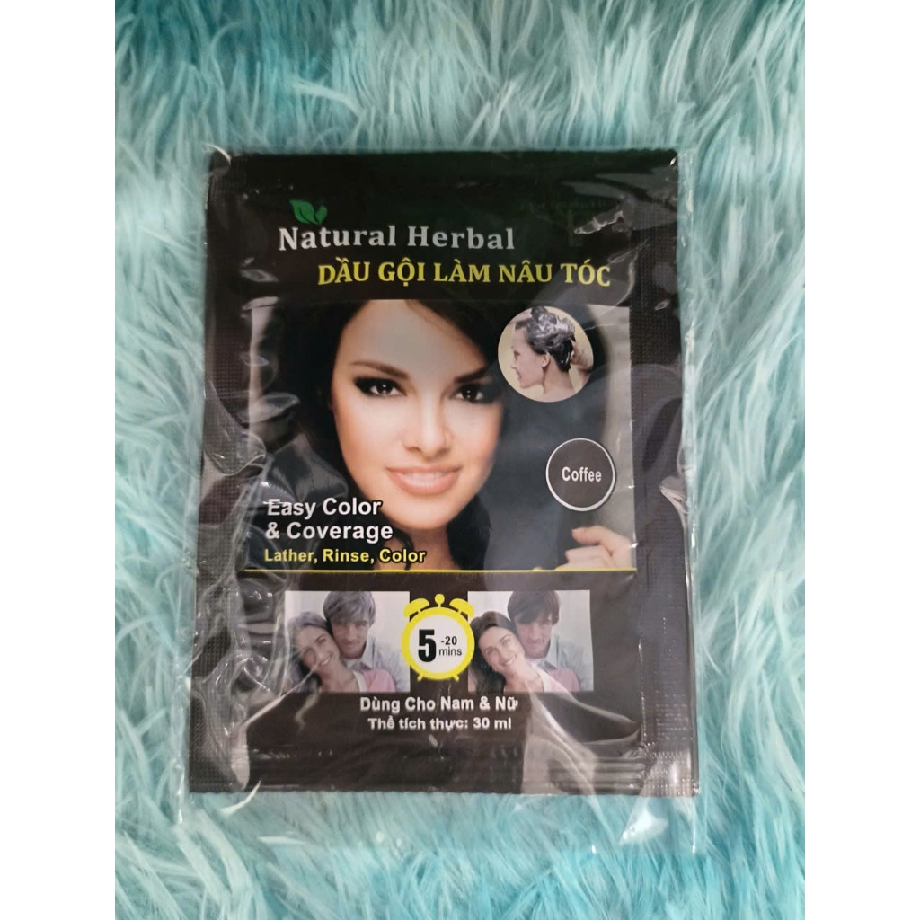 Dầu Gội Nhuộm Tóc Thảo Dược Natural Herbal Chính Hãng Màu Tóc Tự Nhiên Tiện Lợi 30ml/gói