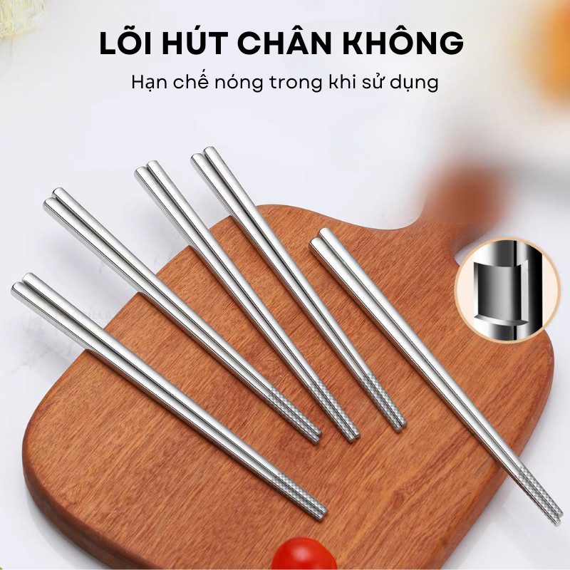 Đũa inox 304 chống trượt cách nhiệt GORILLA CHEF đũa ăn cơm cao cấp an toàn cho sức khỏe
