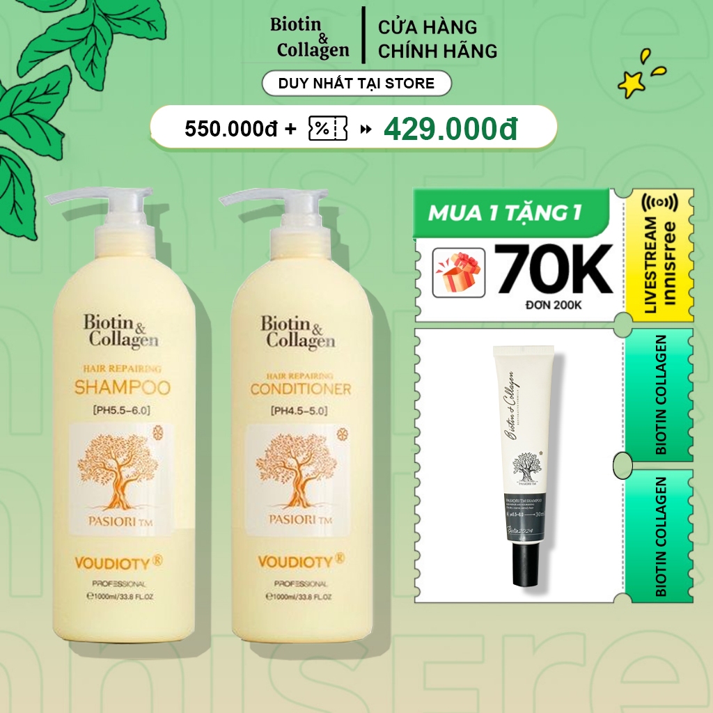 Combo gội xả Biotin Collagen Voudioty 2021 chống rụng tóc, phục hồi, giảm gàu, kiểm soát dầu 500ML - 1000ML