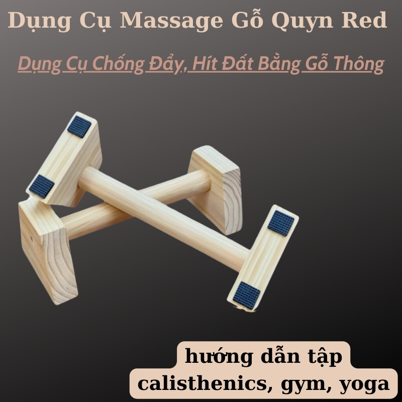 Bộ Đôi Dụng Cụ Hỗ Trợ Chống Đẩy, Hít Đất, Hướng Dẫn Tập Calisthenics, Gym, Yoga - Parallettes Gỗ Thông Có Đế Chống Trượt