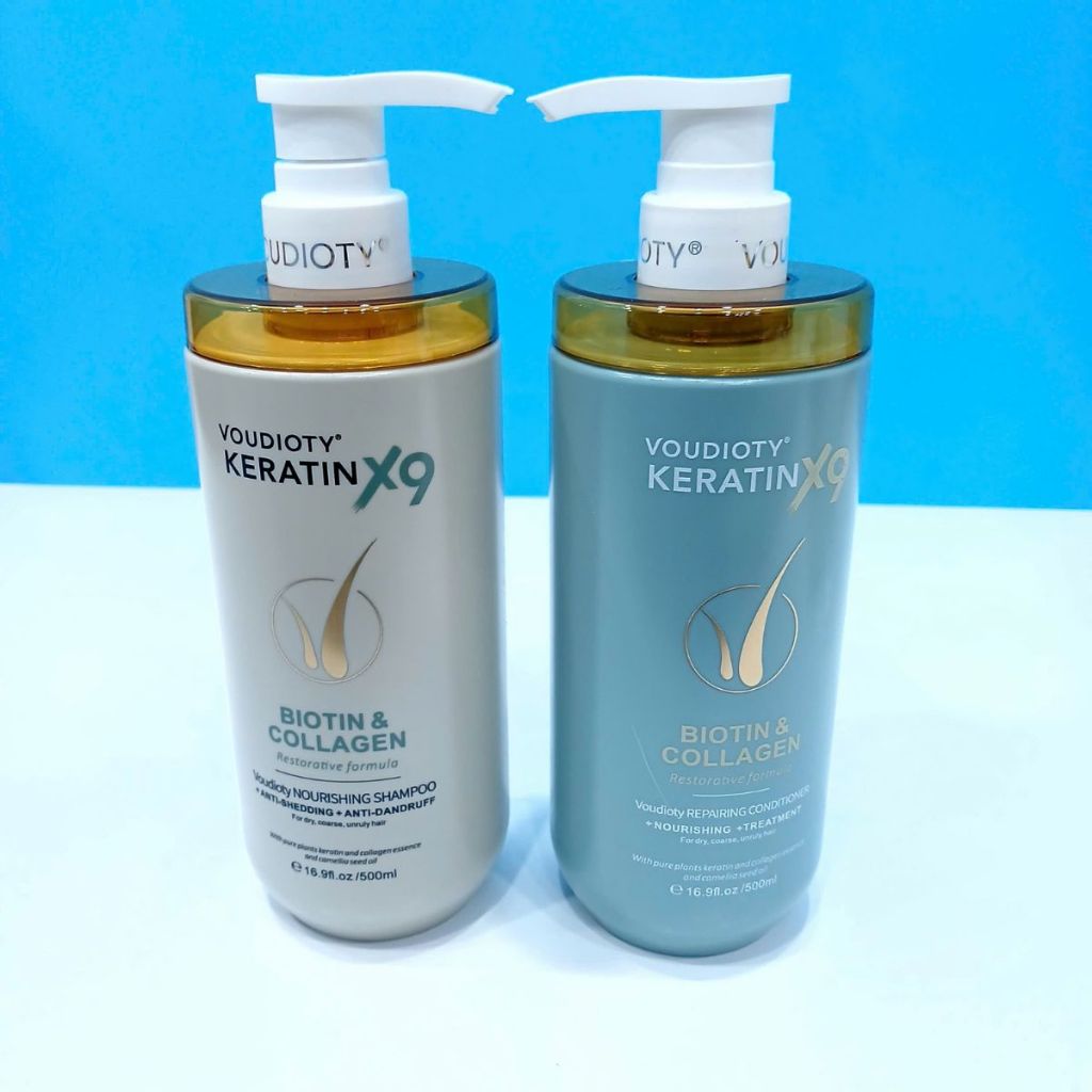 Combo Dầu Gội & Xả Biotin & Collagen Voudioty Keratin X9