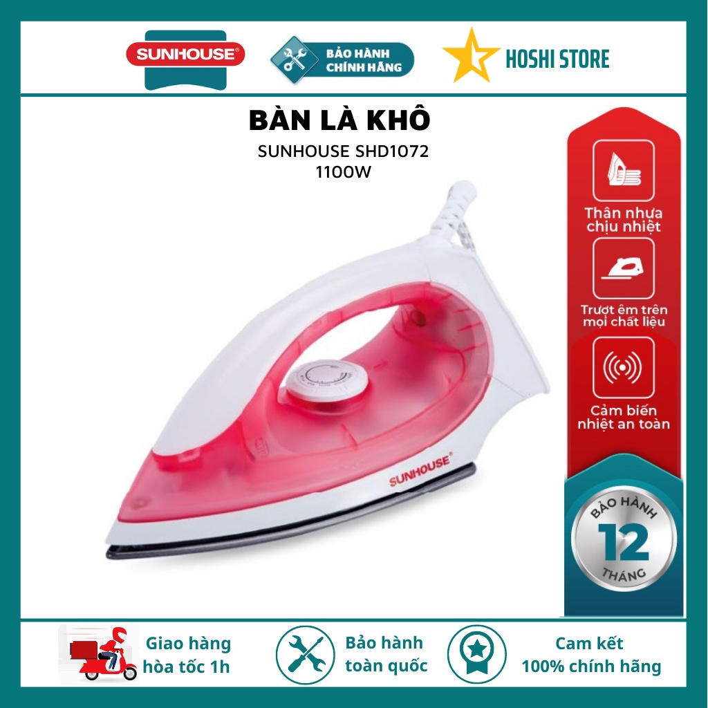 [CHÍNH HÃNG] Bàn là khô chính hãng Sunhouse SHD1072 hồng, bảo hành 12 tháng trên toàn quốc