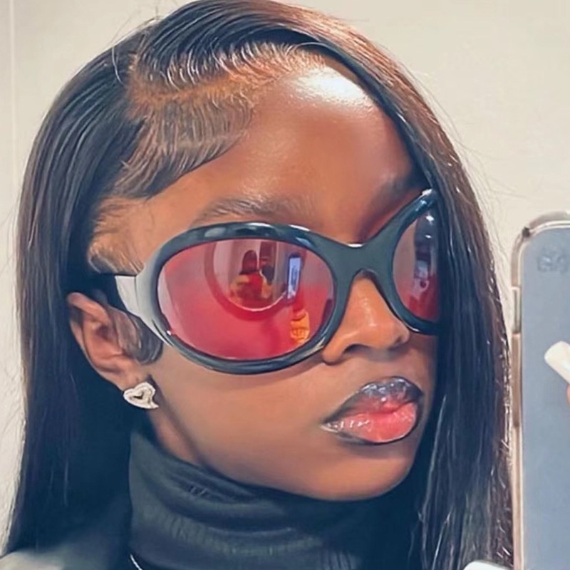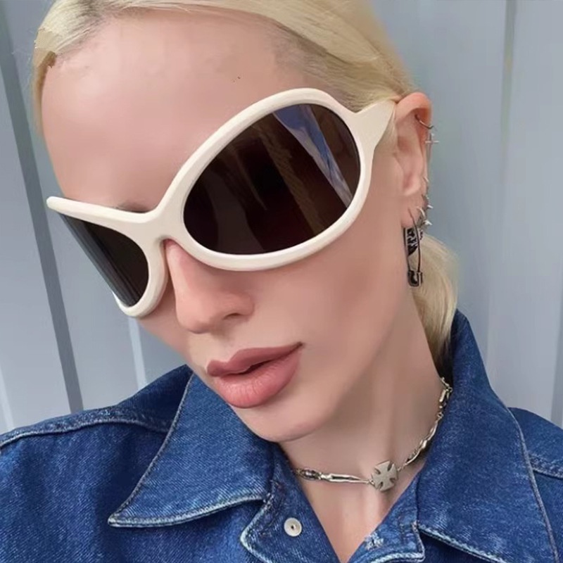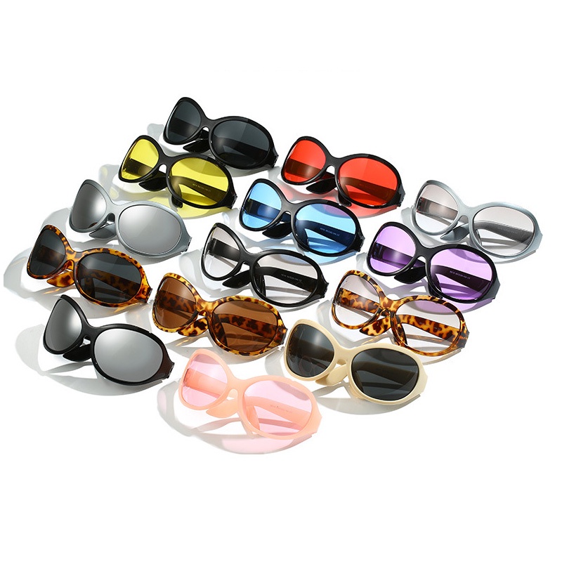 (jiuerba) Kính Râm Nữ y2k futuristic Gọng Cong oversized Đầy Màu Sắc Cá Tính