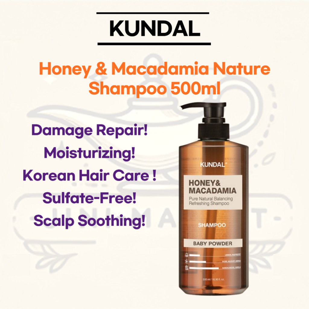 [KUNDAL] Dầu gội Honey & Macadamia Nature 500ml | Sửa chữa hư hỏng | Dưỡng ẩm | Chăm sóc tóc Hàn Quốc | Không chứa Sulfate | Làm dịu da đầu