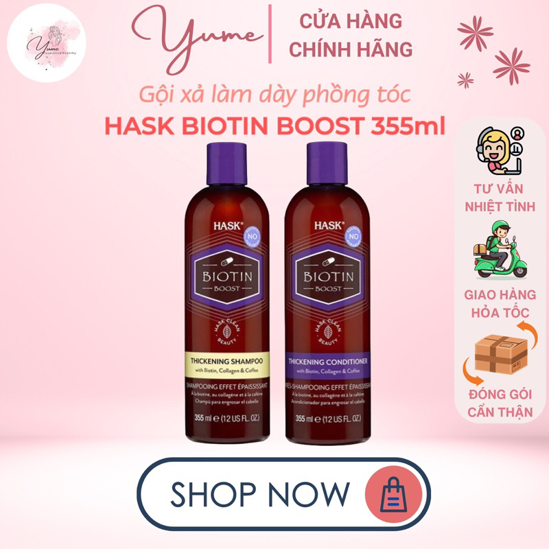 Gội xả tăng cường làm dày phồng tóc Hask Biotin Boost
