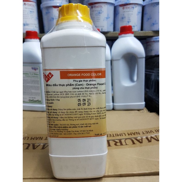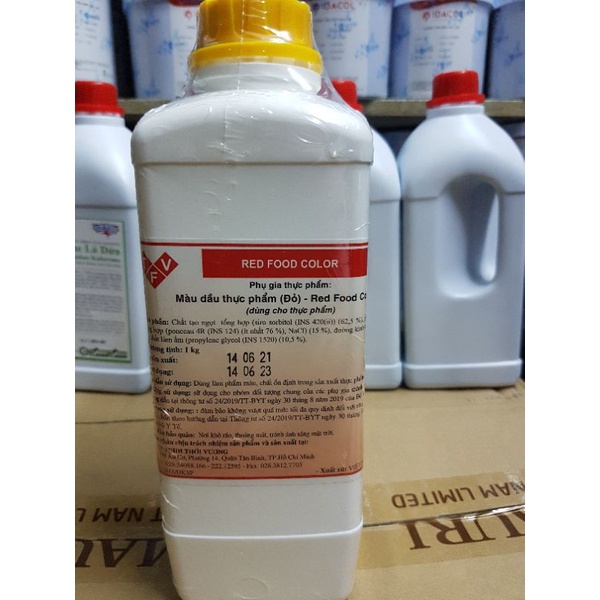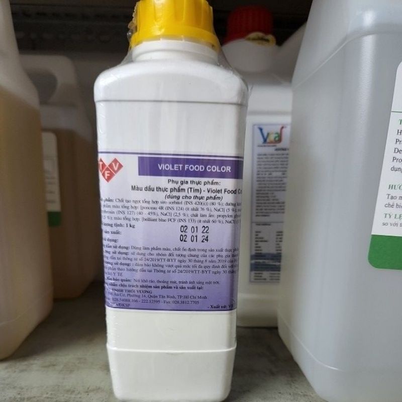 Màu thực phẩm (chai 1kg) dạng nước (Thới Vương Food Color) màu xanh lá, Tím, Nâu, Đỏ, vàng, Cam, xanh dương, hồng.