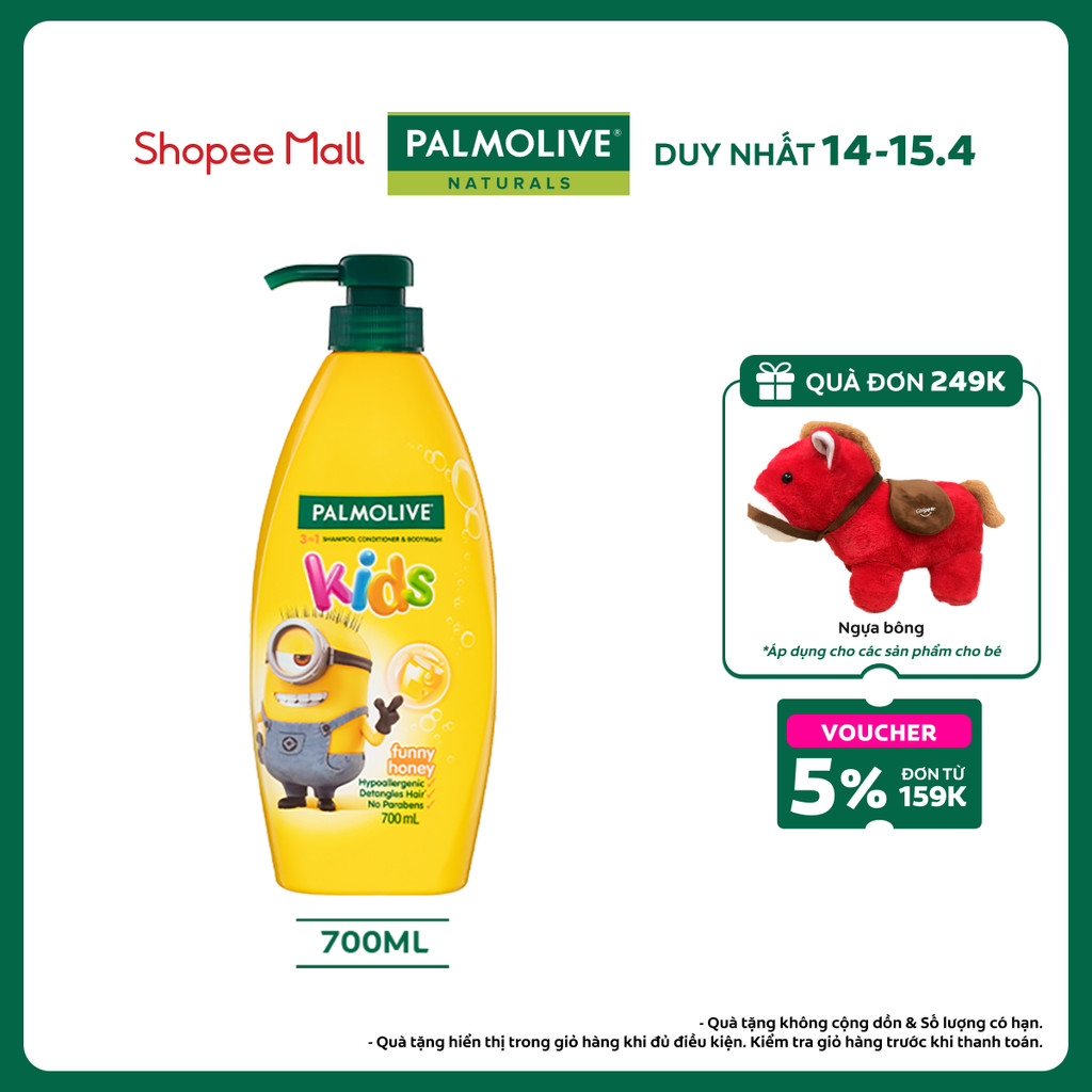 Dầu gội 3 trong 1 Palmolive Minion tắm gội xả toàn thân cho bé từ 3 tuổi, hương mật ong, không kích ứng 700ml/chai