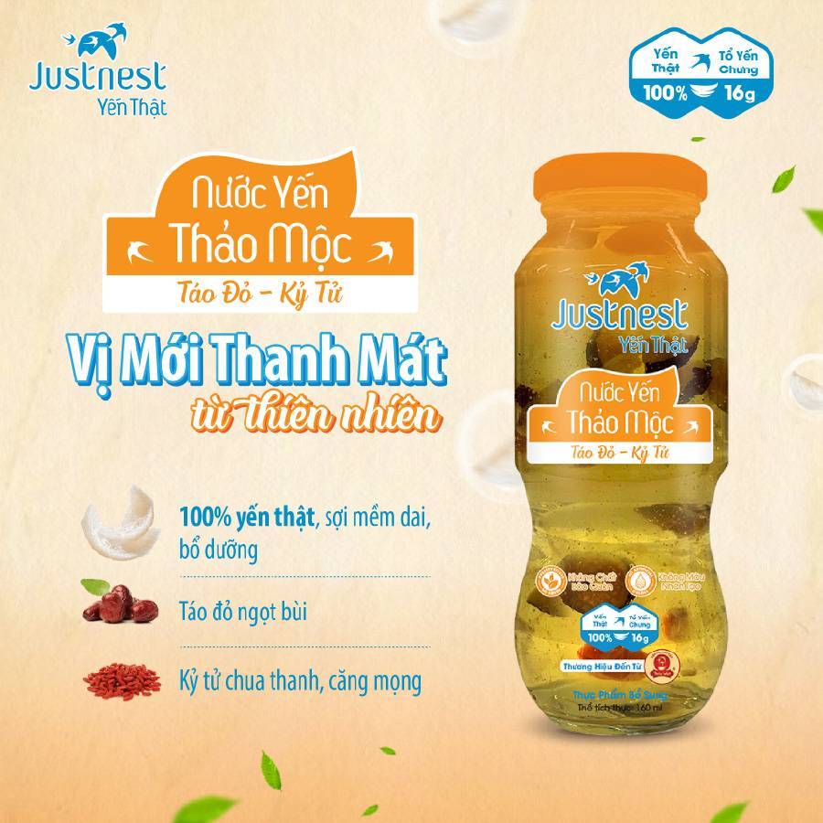 [HSD 10 Tháng Từ NSX] Lốc Nước Yến Thảo Mộc Justnest 16GR Yến Chưng Vị Táo Đỏ Kỷ Tử 6 Lọ X 160Ml | Guardian Việt Nam