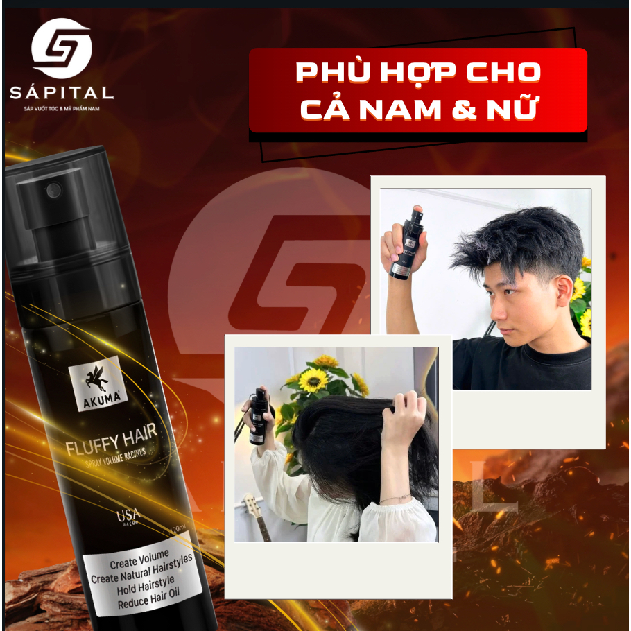 Xịt tạo phồng Akuma Fluffy Hair - Xịt bồng bềnh, Hỗ trợ tạo phồng, kiềm dầu dùng cho cả nam&nữ