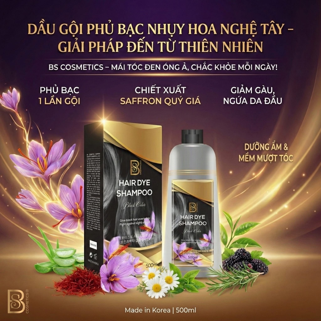 [NHẬP KHẨU CHÍNH NGẠCH -TẶNG BÁT, LƯỢC] Dầu Gội Phủ Bạc Saffron Hair Dye Shampoo Không Chứa Hóa Chất, Không Mùi Khó Chịu