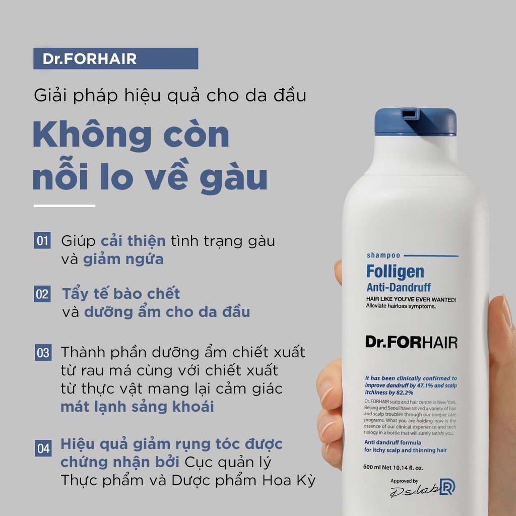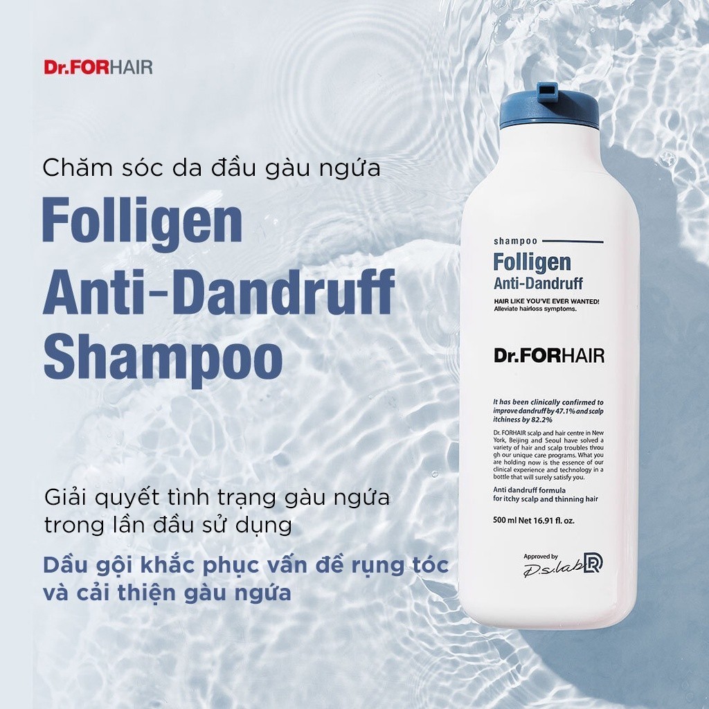Gội dành cho da đầu gàu ngứa, sạch sâu da đầu, hỗ trợ mọc tóc Dr.FORHAIR Folligen Anti-Dandruff Shampoo 500ml [ New ]