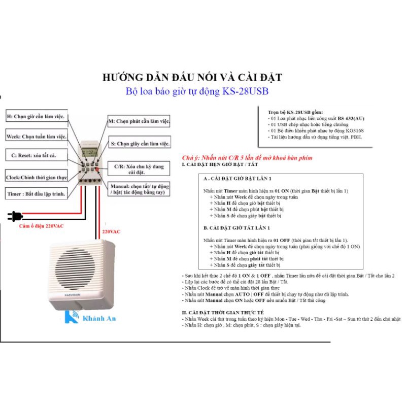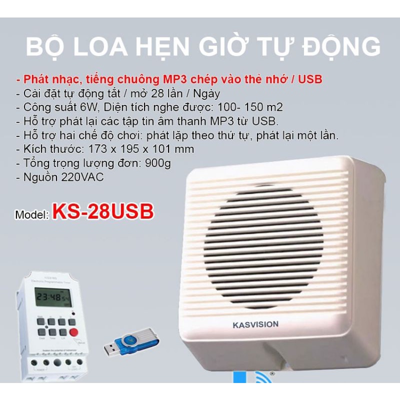 Loa báo giờ làm việc tự động bằng bản nhạc mp3 KS-28USB (mở nhạc, reng báo giờ làm việc cho văn phòng, trường học)