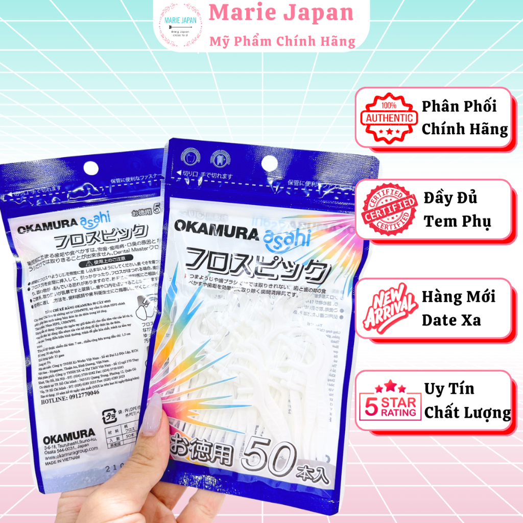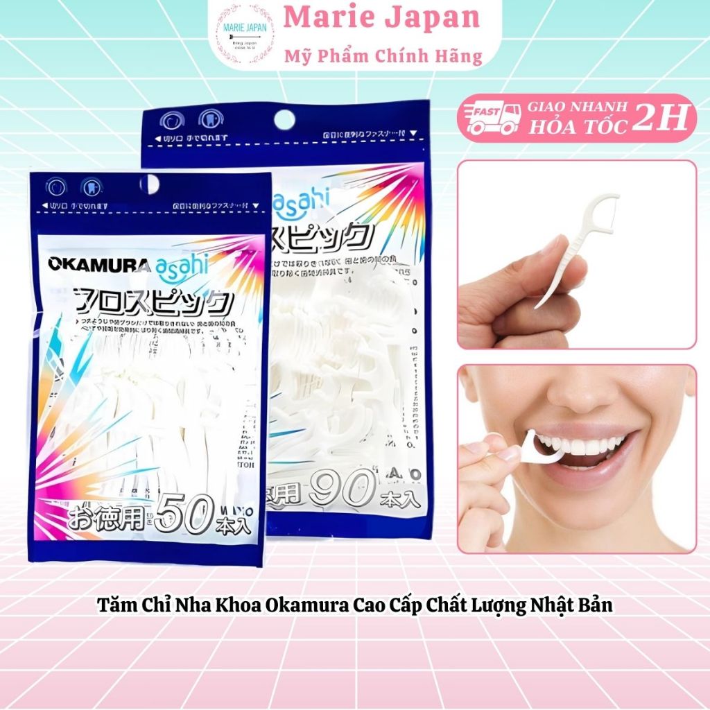 Tăm Chỉ Nha Khoa Okamura Cao Cấp Chất Lượng Nhật Bản - Túi 50 Cây/ 90 Cây