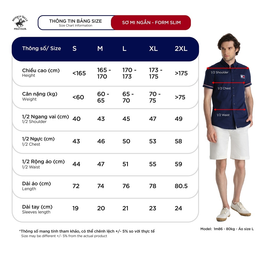 Beverly Hills Polo Club-Áo sơ mi ngắn tay Nam Slim Fit Trắng Trơn-CMSSW23TL003