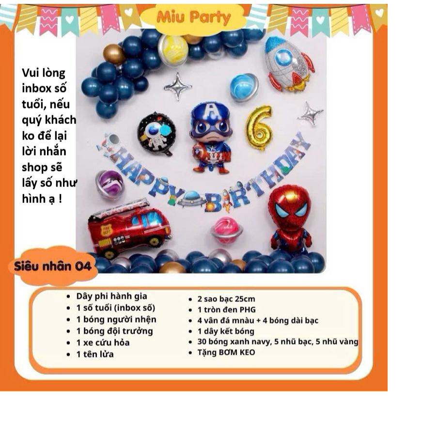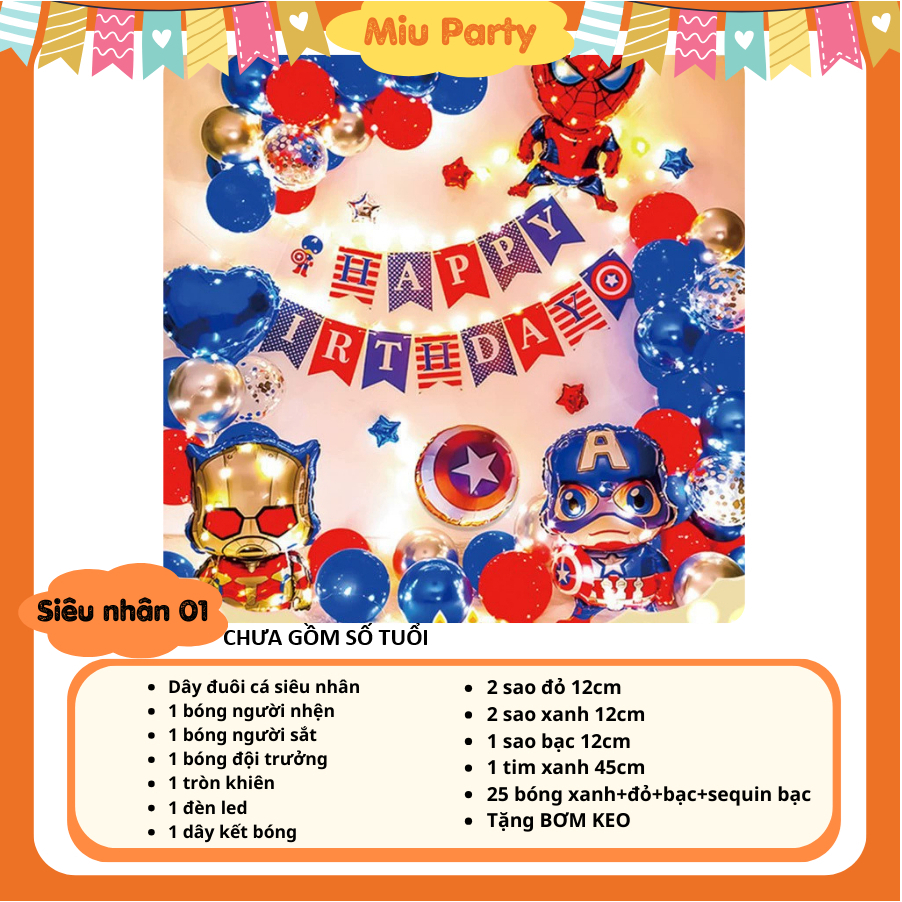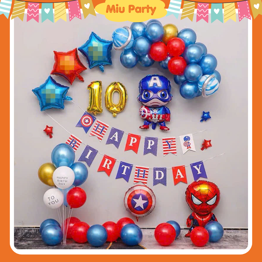 Set Trang Trí Sinh Nhật Siêu Nhân, Bong Bóng Người Nhện, CAPTAIN - Miu Party