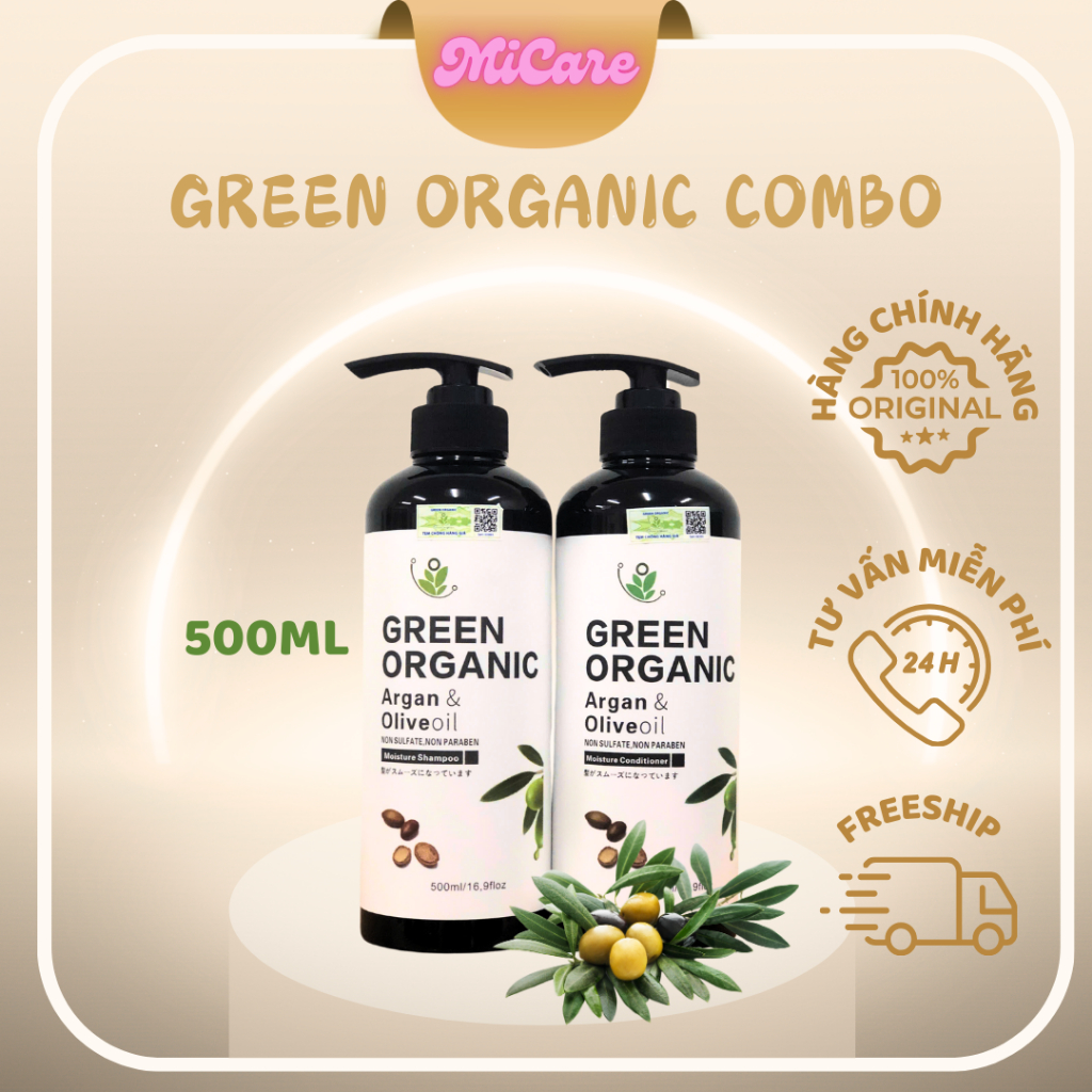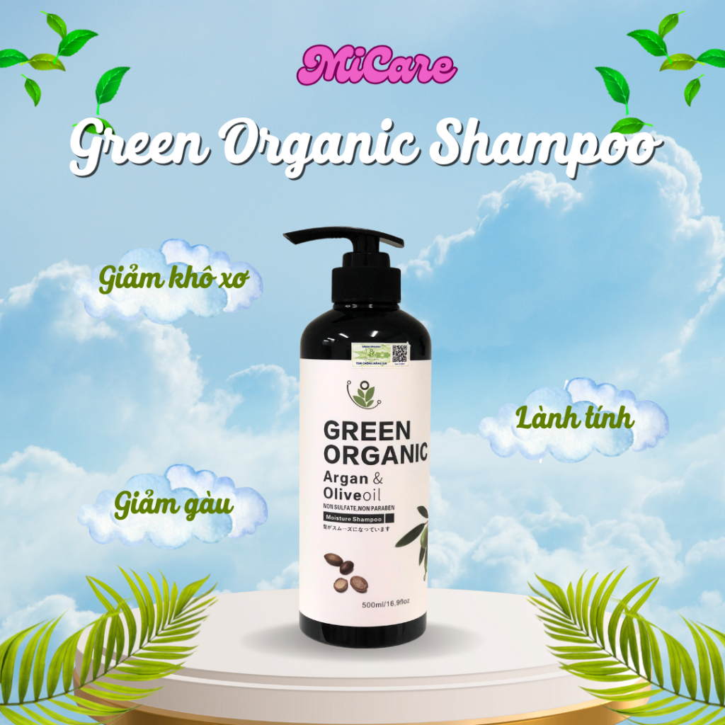 [MUA 1 TẶNG 1] Dầu Gội Green Organic 500ml Argan & Olive oil phục hồi tóc hư tổn, làm mềm mượt và bóng khỏe | MiCare