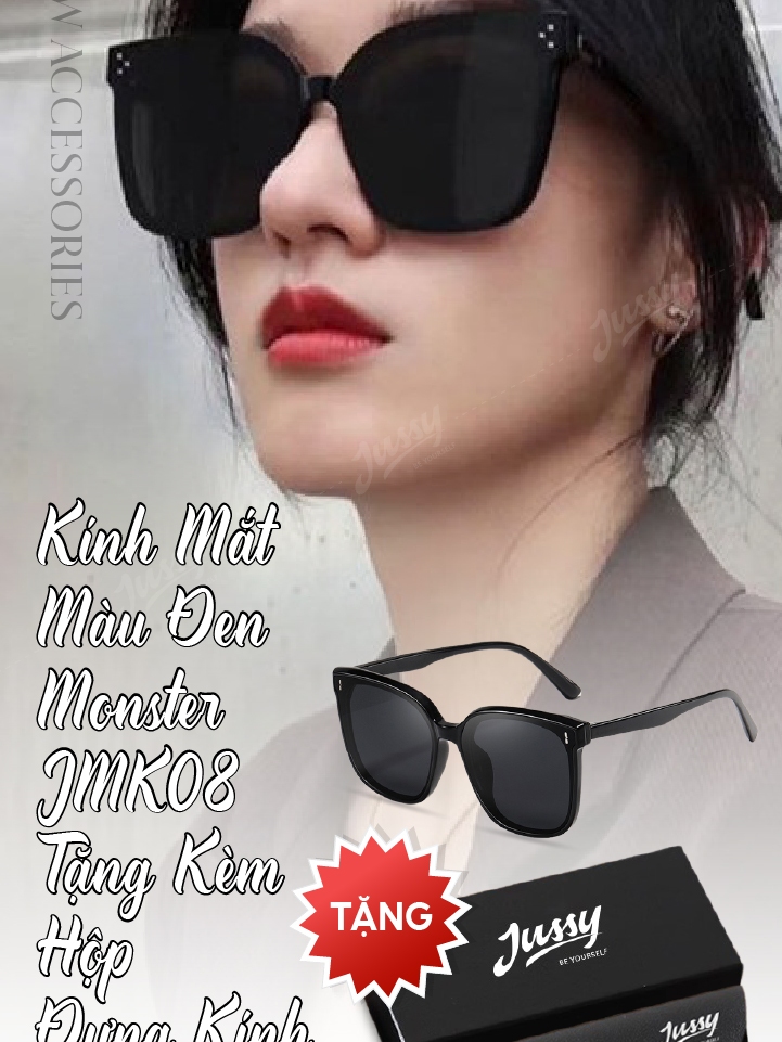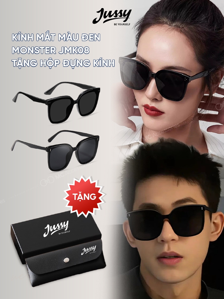 Kính Mát Màu Đen Monster JMK08 Jussy Offcial Kính Nam Nữ Phong Cách Hàn Quốc Tặng Kèm Hộp Đựng Kính Cao Cấp
