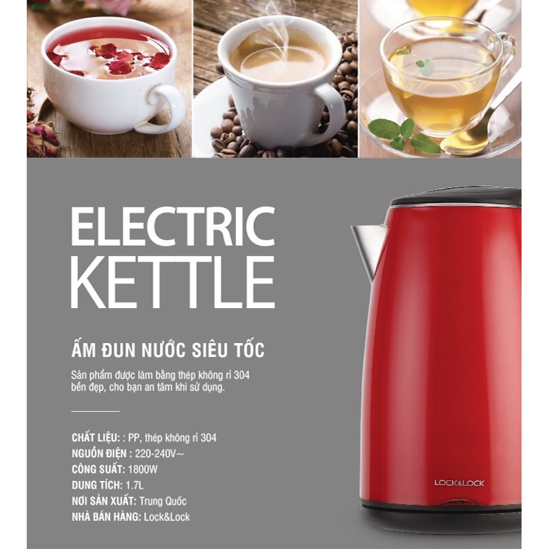 [LOCK&LOCK] Ấm Đun Siêu Tốc Inox 2 Lớp Chống Nóng - EJK731