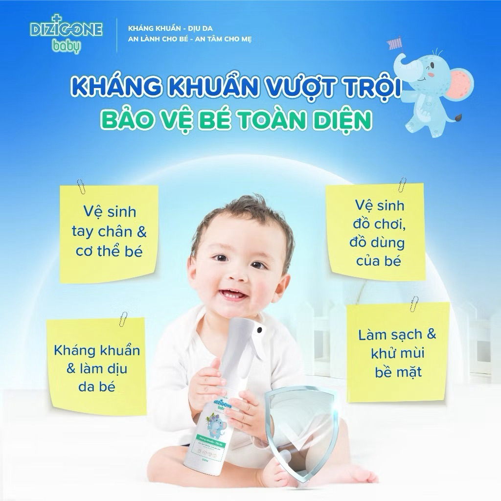 Xịt kháng khuẩn DIZIGONE - Vệ sinh tay chân, đồ chơi, đồ dùng, phòng bệnh & chăm sóc tổn thương da cho bé 100ml