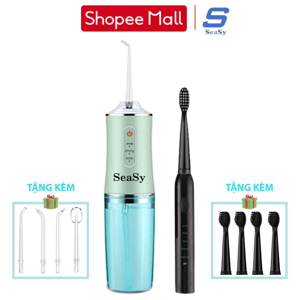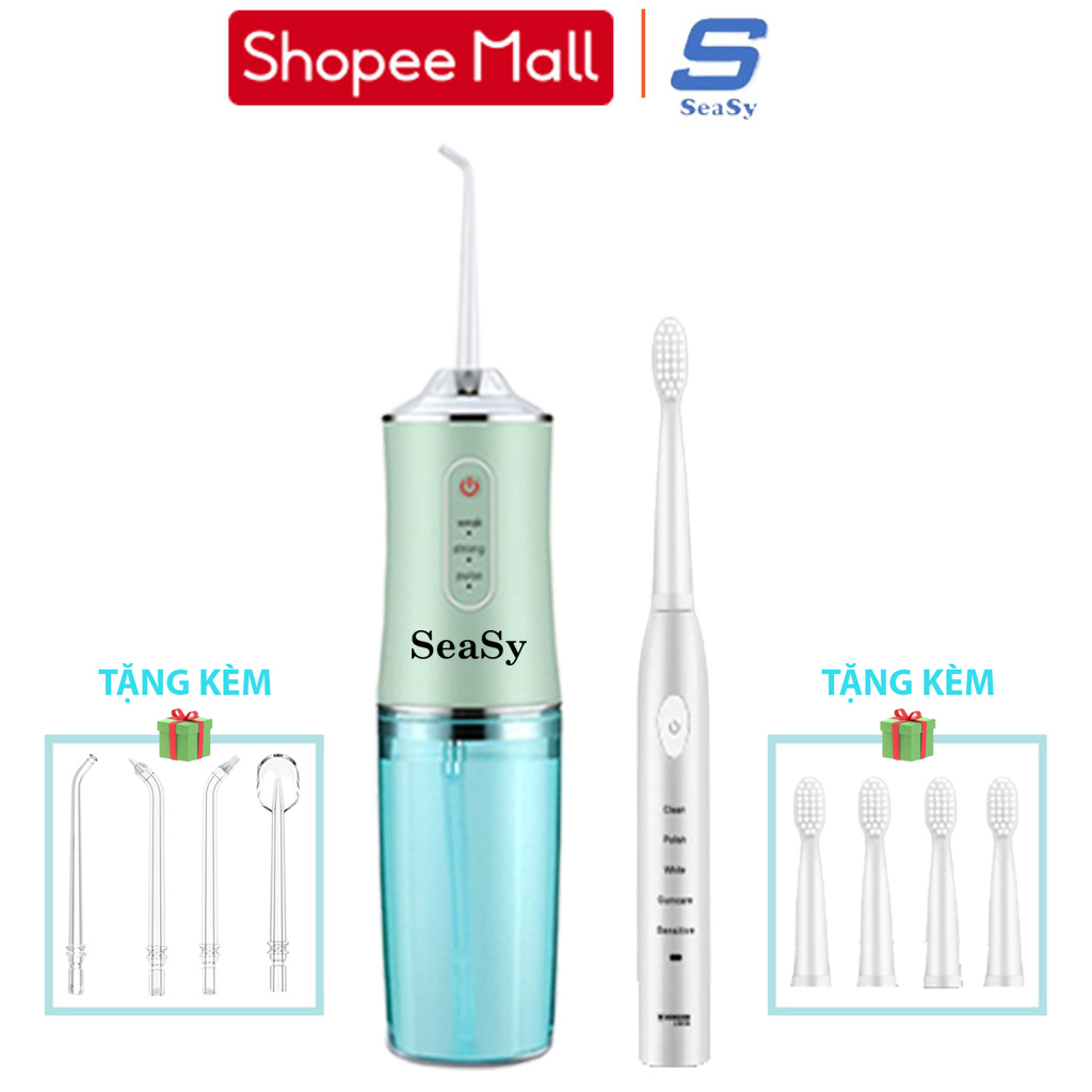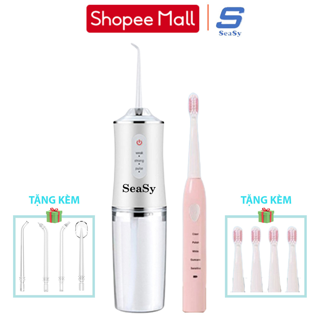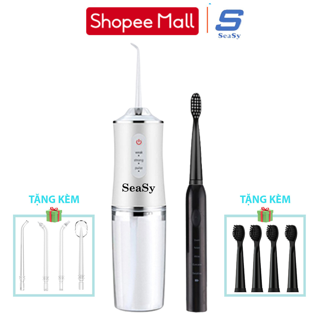 Combo tăm nước và bàn chải điện SeaSy SS66-X8 giúp vệ sinh răng miệng toàn diện tại nhà