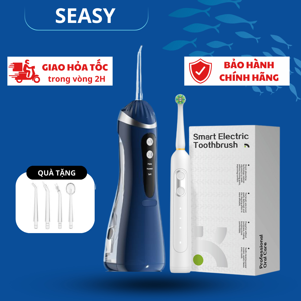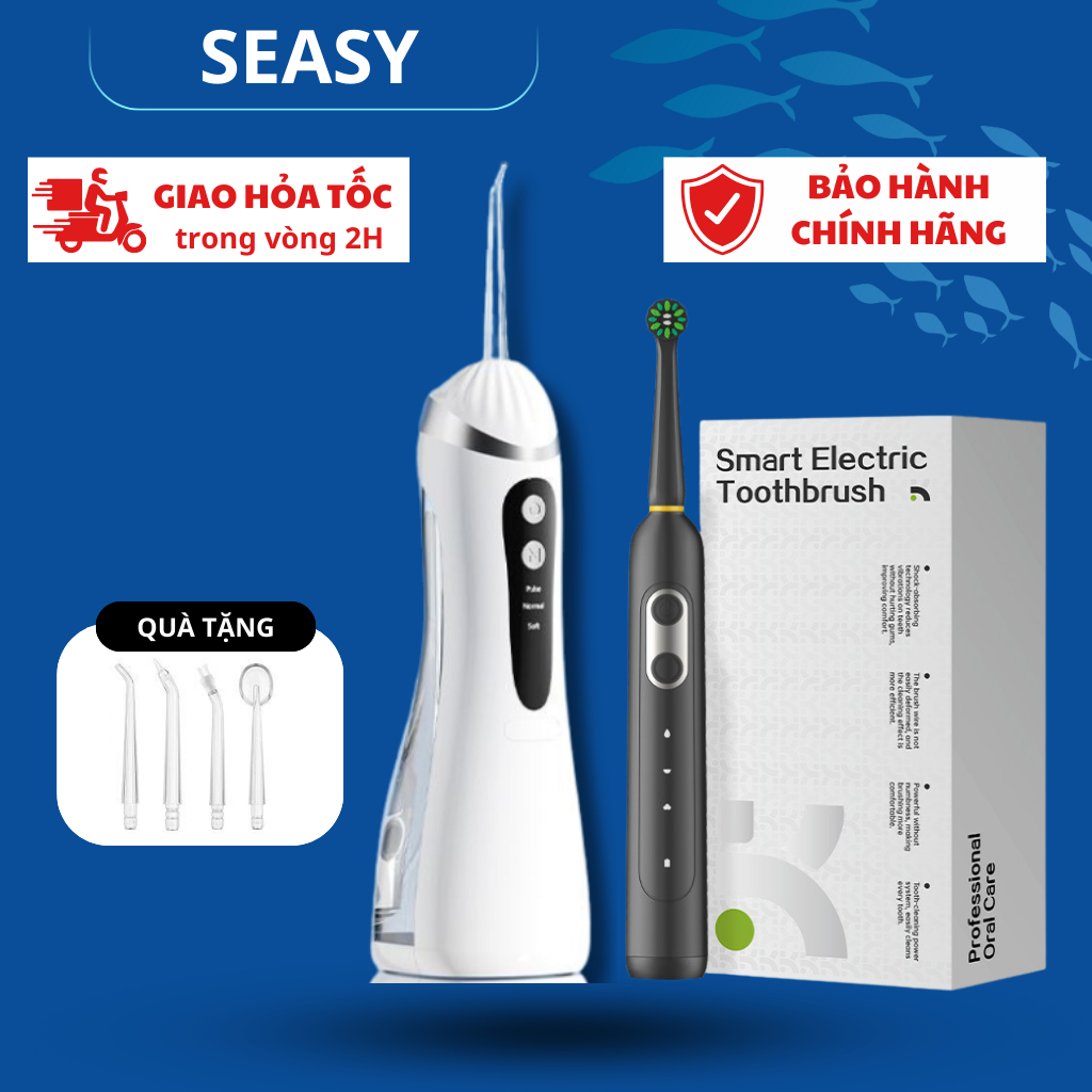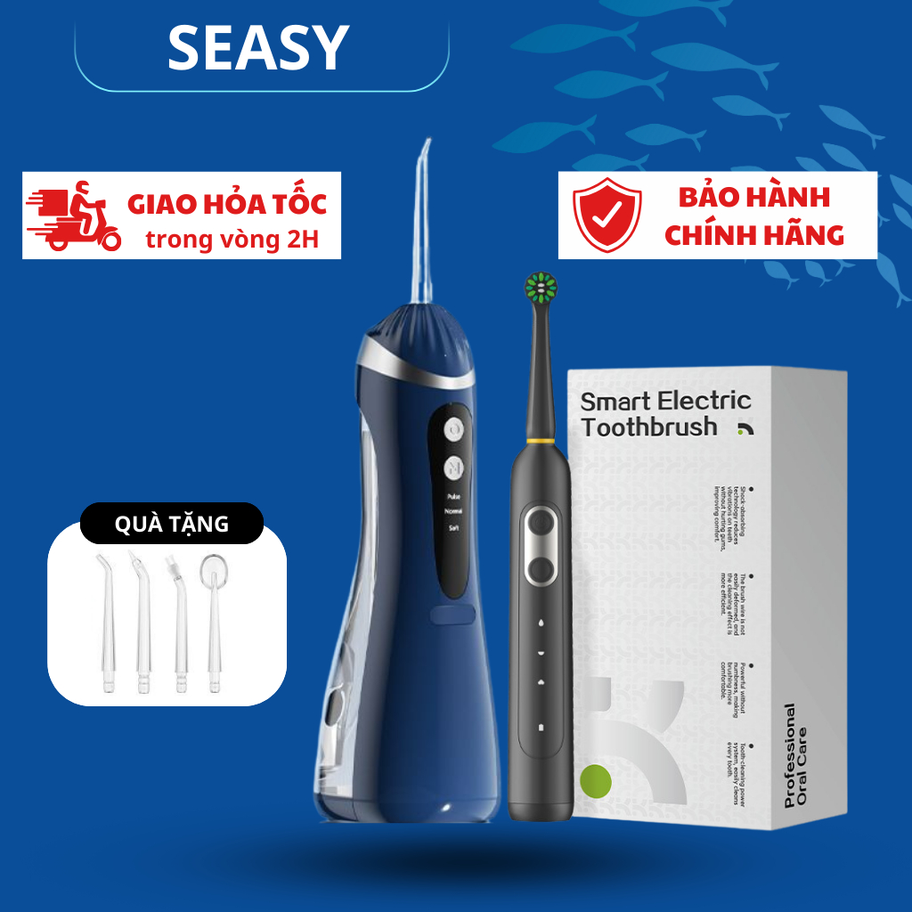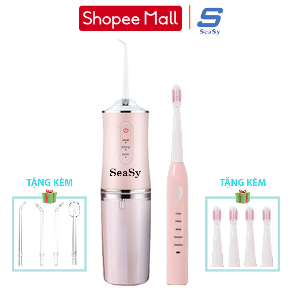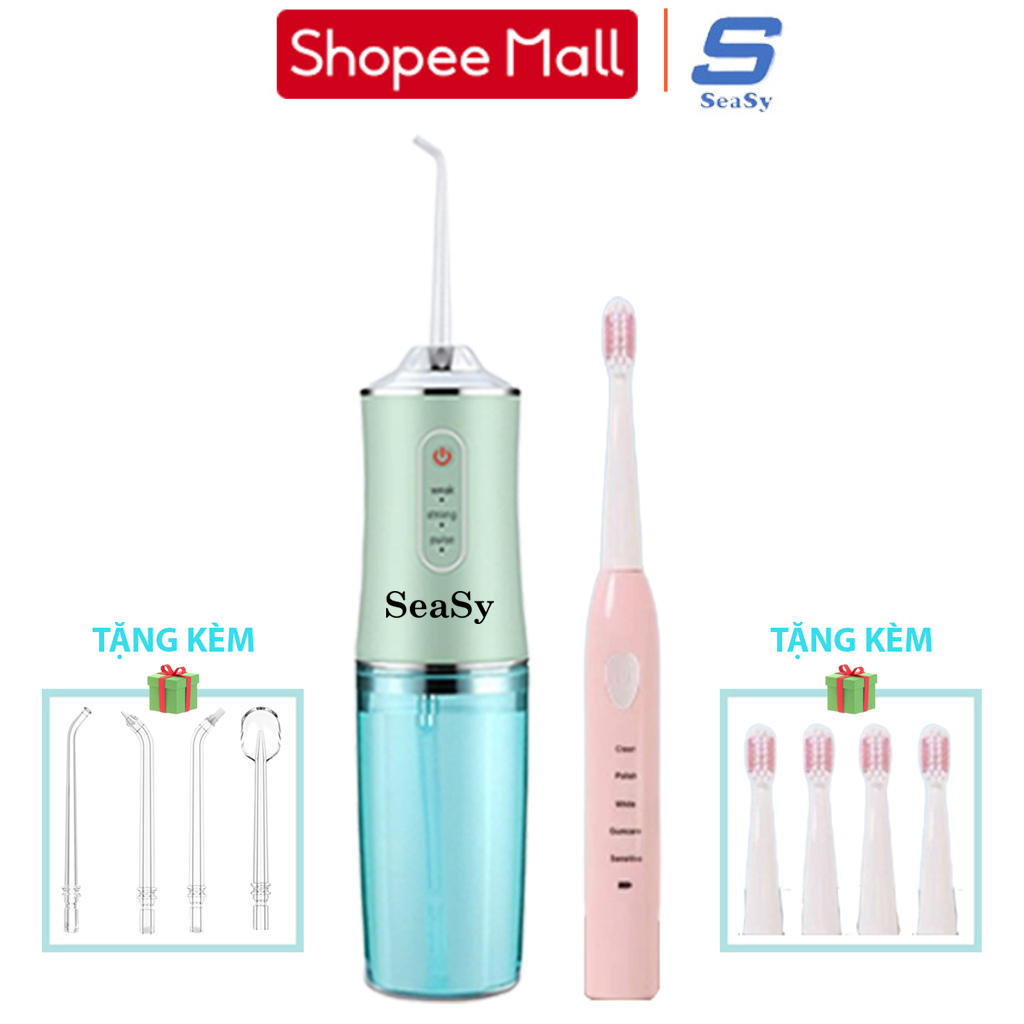 Combo tăm nước và bàn chải điện SeaSy SS66-X8 giúp vệ sinh răng miệng toàn diện tại nhà