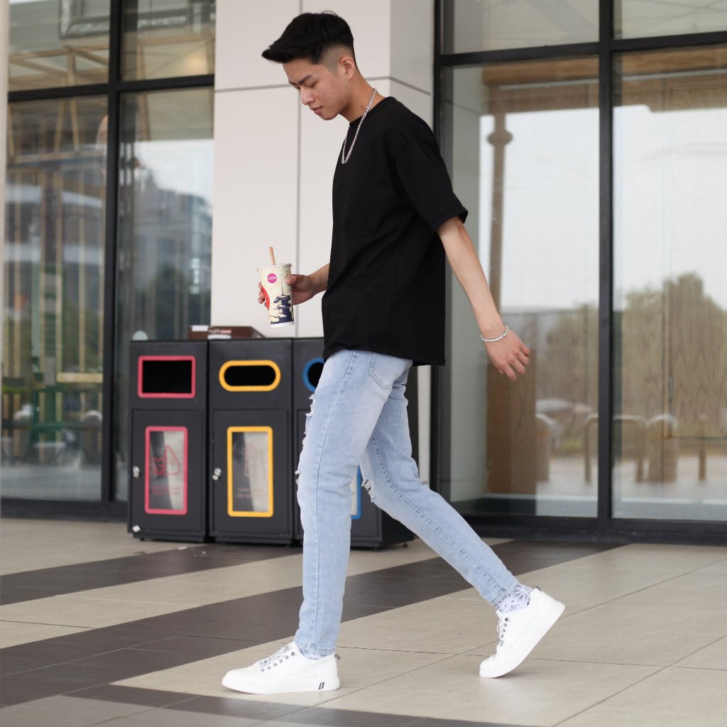 Quần jean nam rách gối xanh nhạt co giãn tốt, form ôm tôn dáng, phong cách trẻ trung thời trang skinny slimfit pon.mens