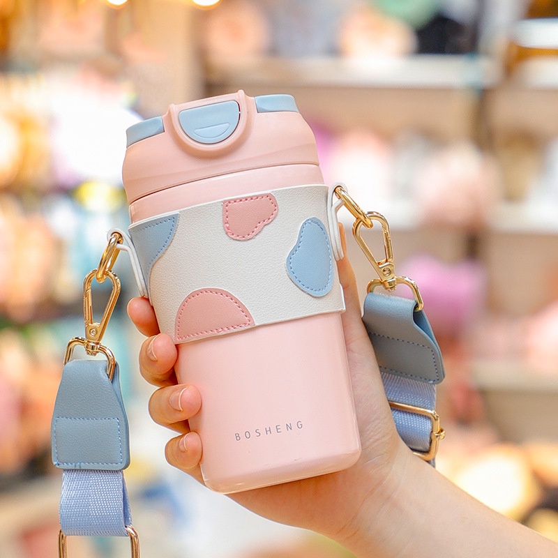 Bình giữ nhiệt có ống hút, ly nước giữ nhiệt 450ml inox 304 3 lớp an toàn cho sức khỏe tặng 2 tấm sticker