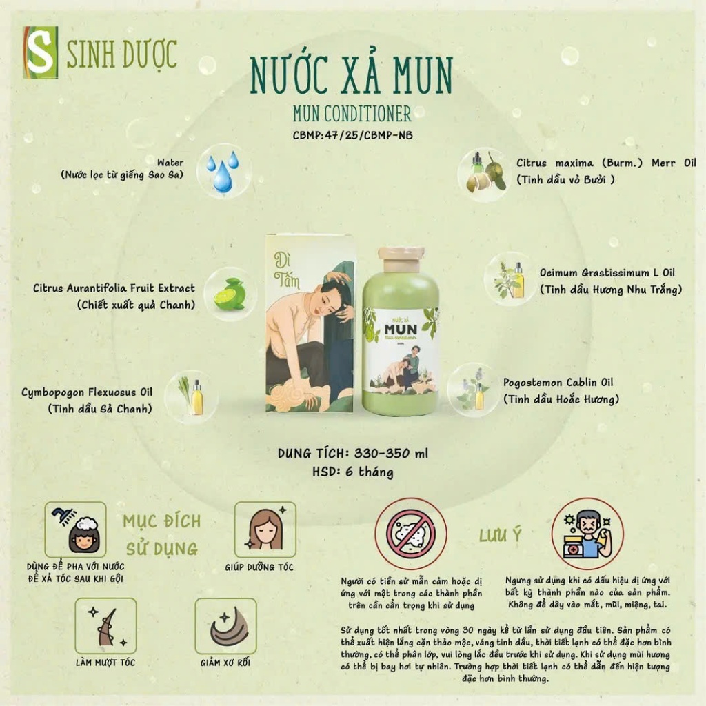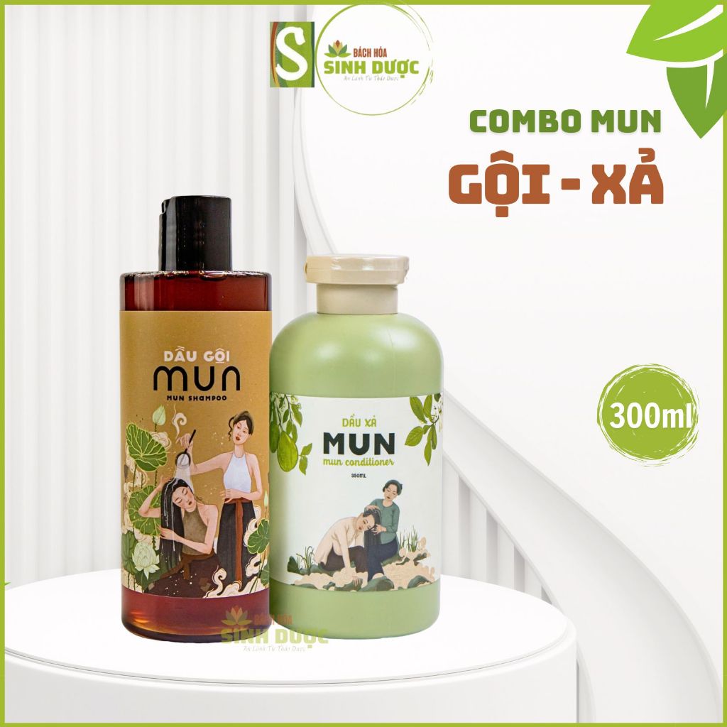 COMBO Chăm sóc tóc: Dầu gội, cao gội MUN - Dầu dưỡng MUN, Dầu xả Mun htx sinh dược, dưỡng tóc tự nhiên