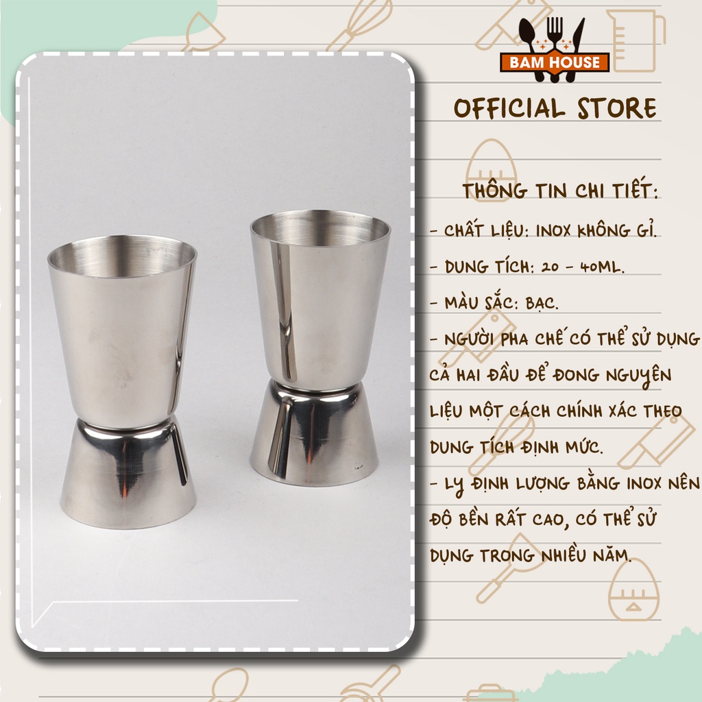 Ly đong định lượng pha chế 2 đầu Bam House loại lớn 50ml inox 304 cao cấp LD01