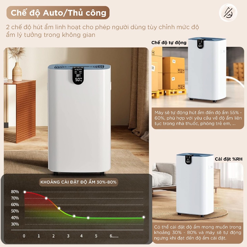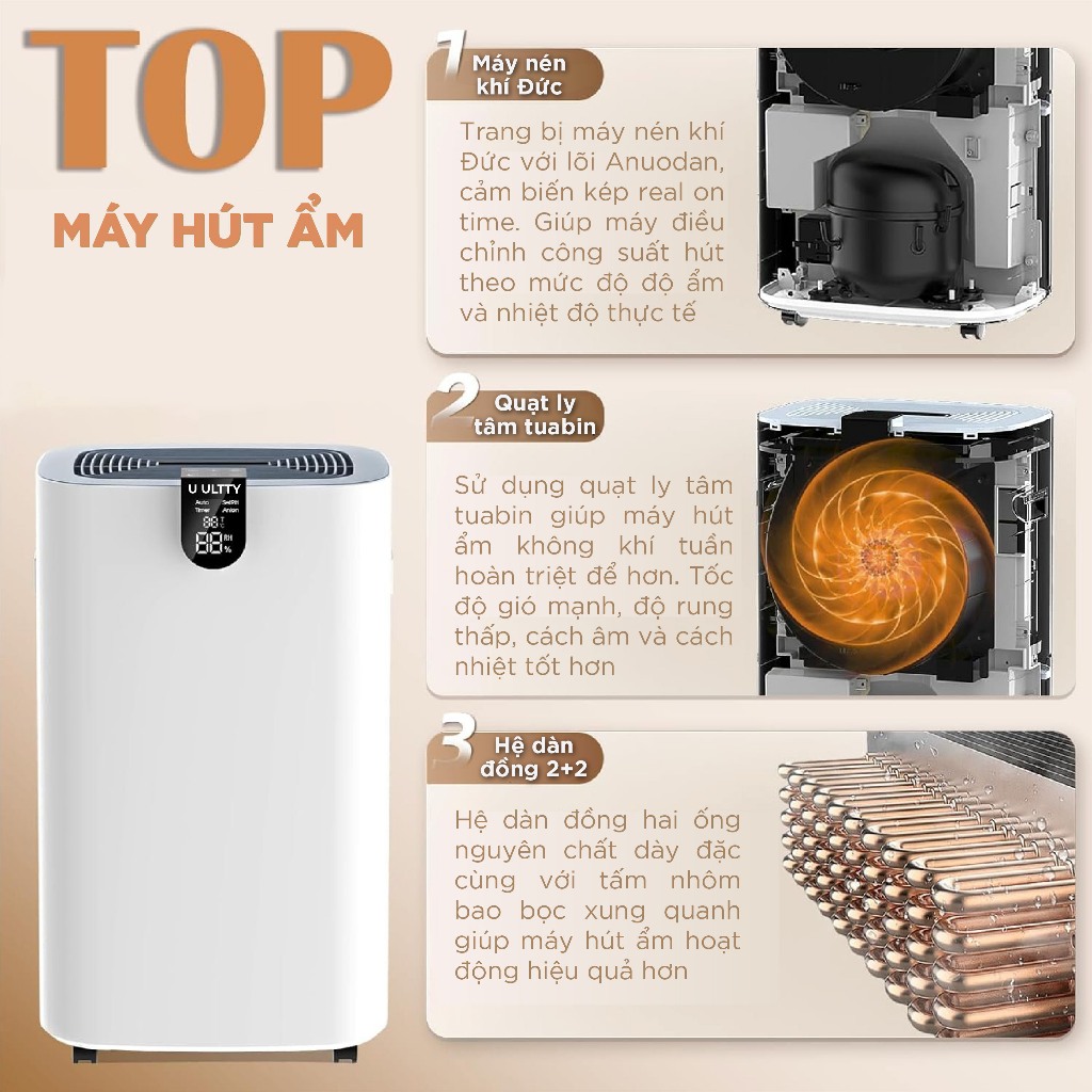 Máy hút ẩm và lọc không khí U ULTTY HERCULES, Tạo Plasmacluster ION, Bình chứa 5,5L, Bảo hành 2 năm