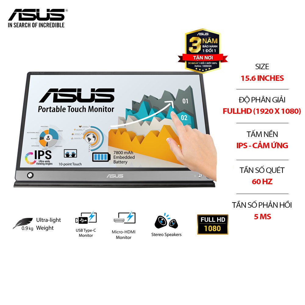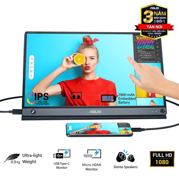 Màn Hình Cảm Ứng Di Động ASUS ZenScreen MB16AMT 15.6" IP FHD, 7800mAh, USB Type-C