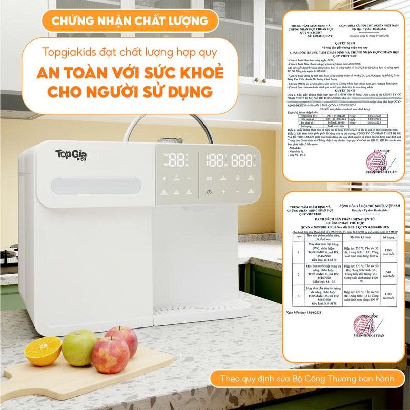 Máy Đun Hâm Rót Nước Tiệt Trùng UVC Cao Cấp TOPGIAKIDS M1-05 Máy Đun Hâm Nước Pha Sữa bảo hành 3 năm