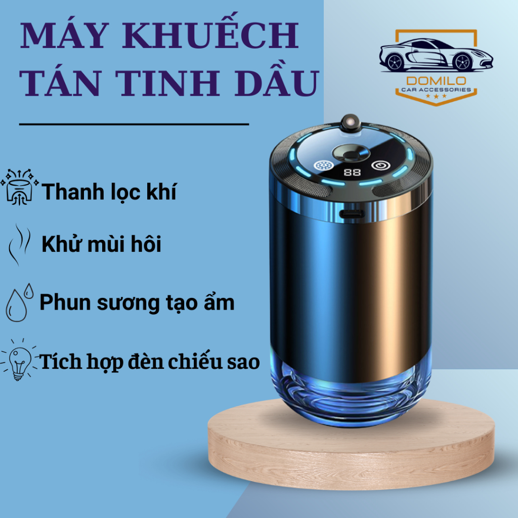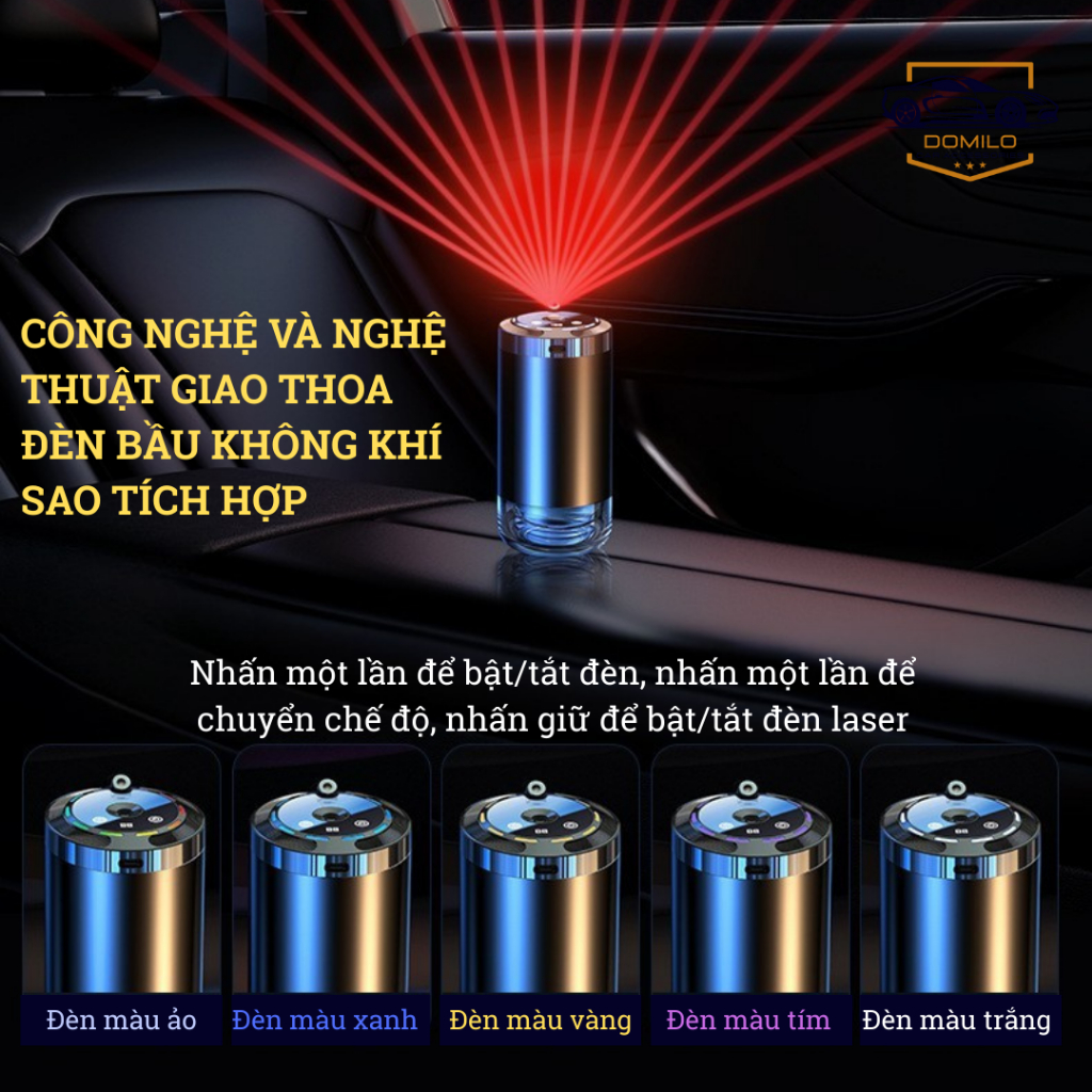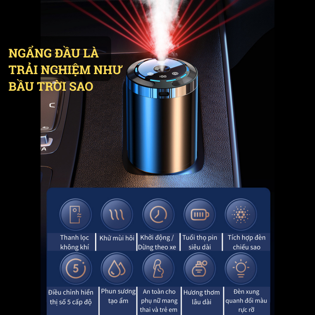 Máy Khuếch Tán Tinh Dầu Ô Tô - Đèn LED Trần Sao - AI Thông Minh, Khử Mùi - Tặng kèm 1 chai tinh dầu 50ml cao cấp