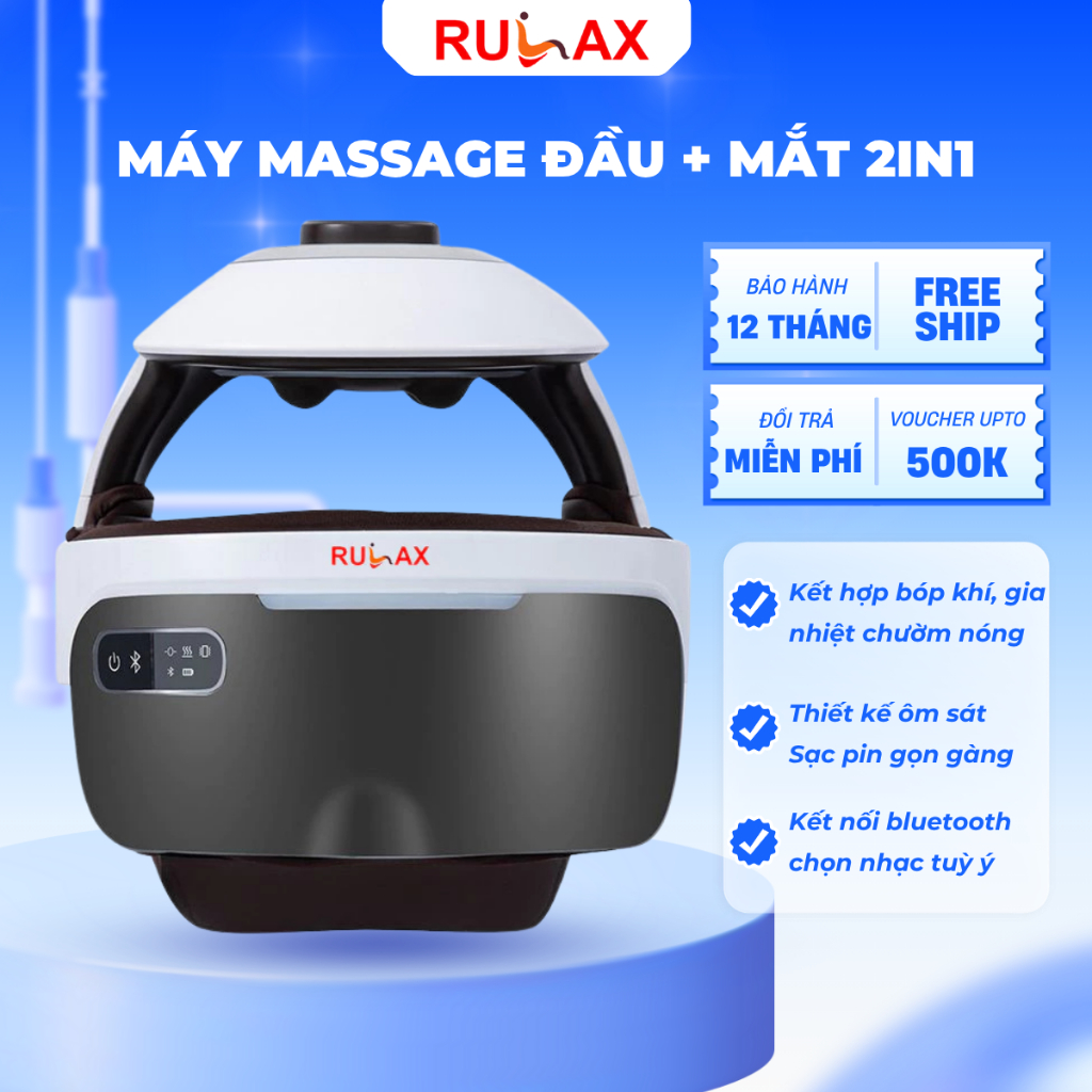 Máy Massage Đầu RULAX Thông Minh, Kết Nối Bluetooth, Xoa Bóp Túi Khí Kết Hợp Nhiệt | BH 12 Tháng |