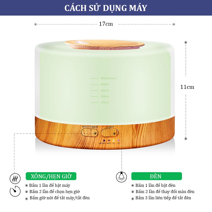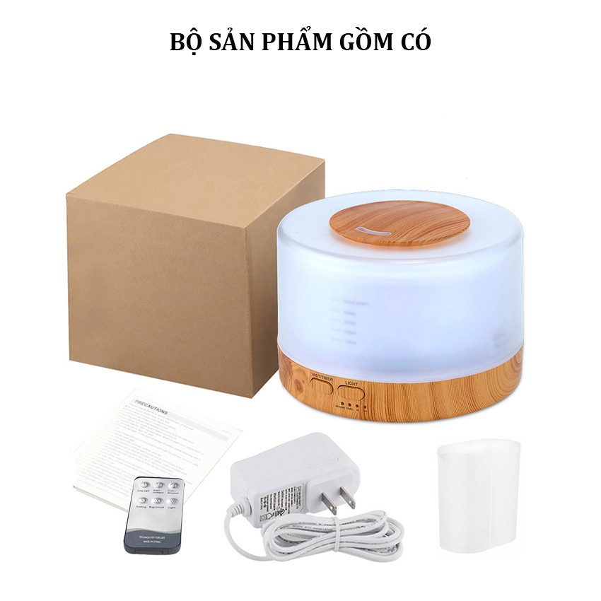 Máy Xông Tinh Dầu Khuếch Tán Phun Sương Hình Trụ Vân Gỗ Nga My JSC Dung Tích 500ml Bù Ẩm Phòng Điều Hòa