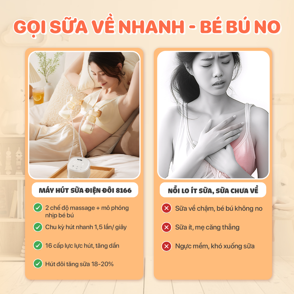 Máy hút sữa điện đôi TG8166 TopGiaKids – Lực hút mạnh và đều, 4 chế độ massage – hút – kích – mô phỏng, bảo hành 3 năm