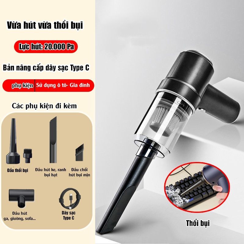 Máy hút bụi cầm tay dodoto, máy hút bụi giường nệm mini không dây lực hút 20.000 Pa công suất 120w