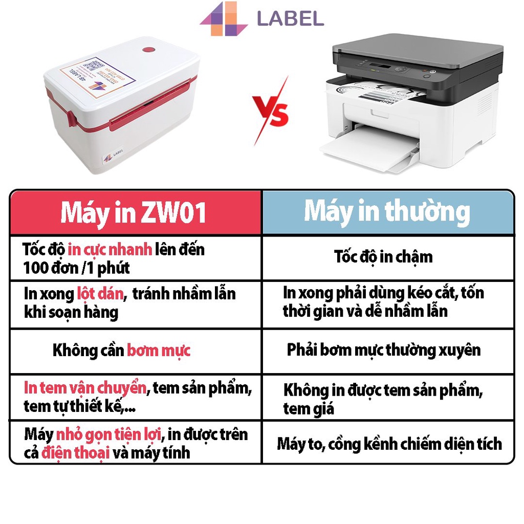 Máy in nhiệt điện thoại A6, Máy in nhiệt ZY909 Printer in đơn hàng nhanh chóng không cần mực, in decal, tem vận chuyển