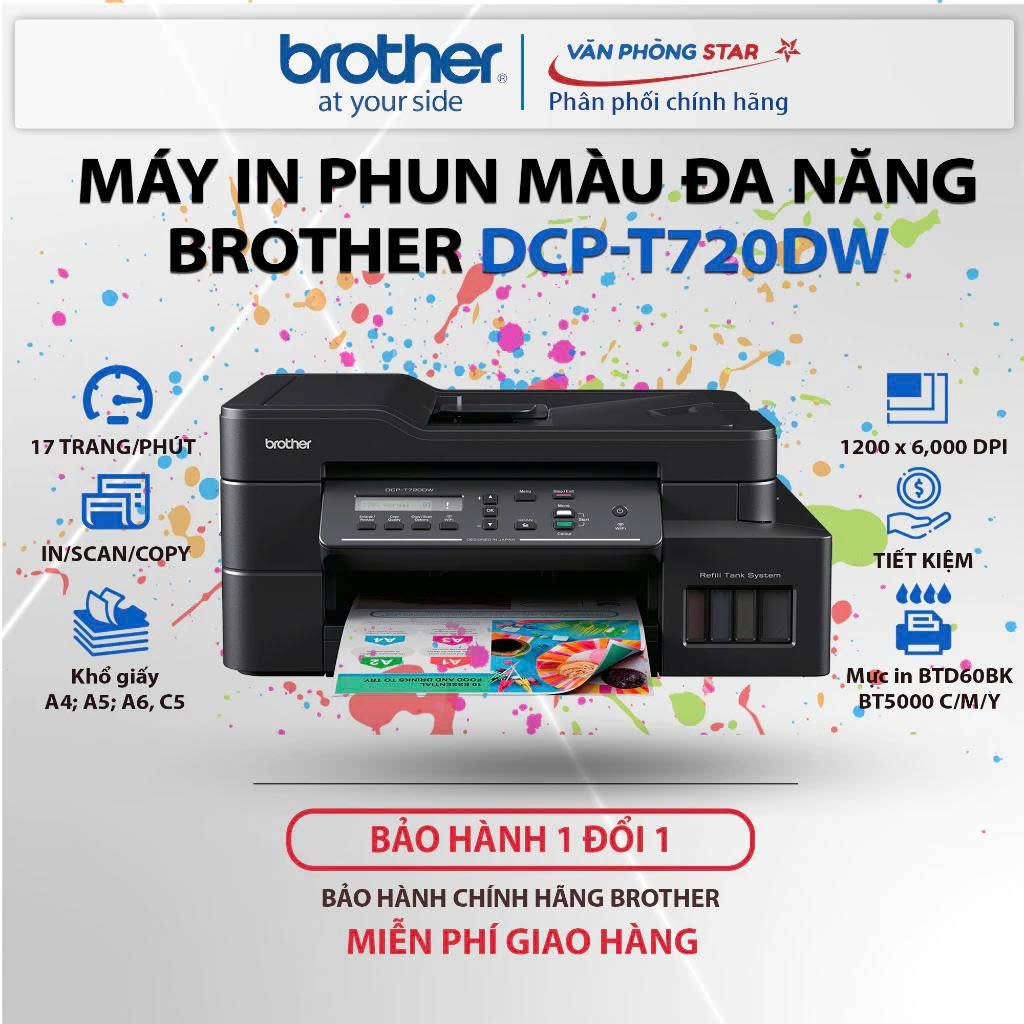 Máy in phun màu đa chức năng Brother DCP-T720DW (In WIFI ĐẢO MẶT/COPY/SCAN) CHÍNH HÃNG MỚI 100%