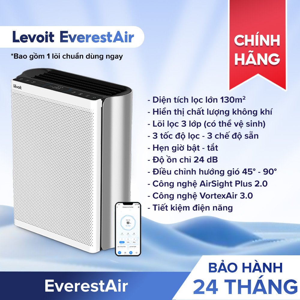 Máy Lọc Không Khí Levoit EverestAir 126m2 | Lọc bụi mịn - Đèn cảm biến chất lượng không khí - Hẹn giờ