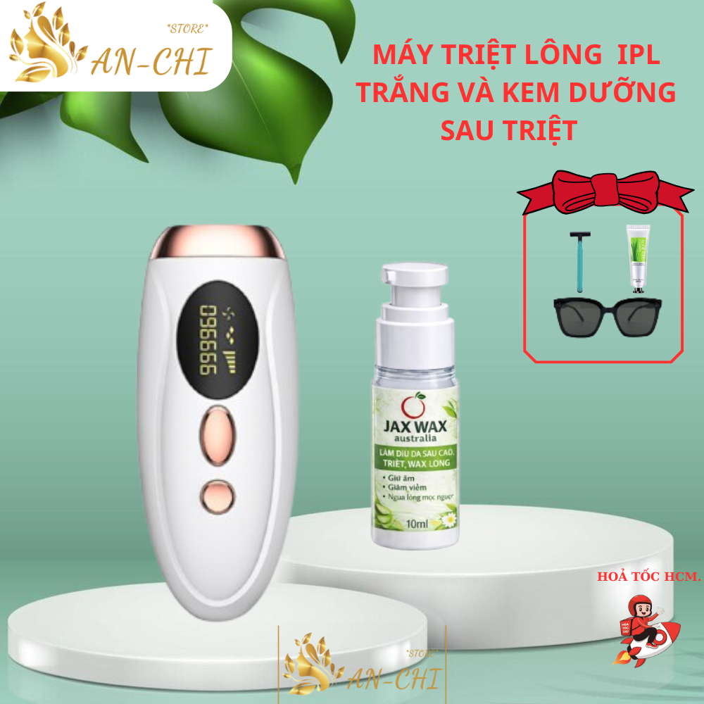 Máy triệt lông tại nhà chính hãng ipl, máy triệt lông nách, tay, vùng kín, mini + serum, mắt kính, dao cạo, Anchi Beauty